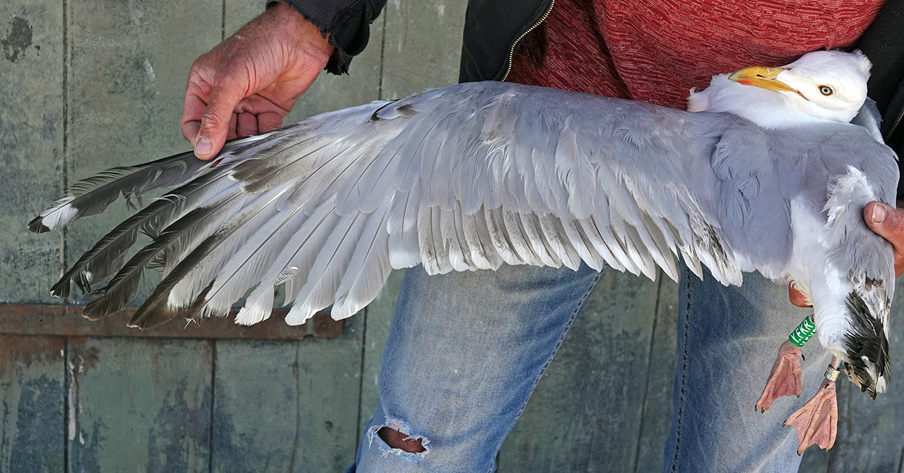 below: Herring Gull (argenteus) Y.FKR 4CY, May 26 2025, IJmuiden, the Netherlands. Picture: IJmuiden Ringing Team. |