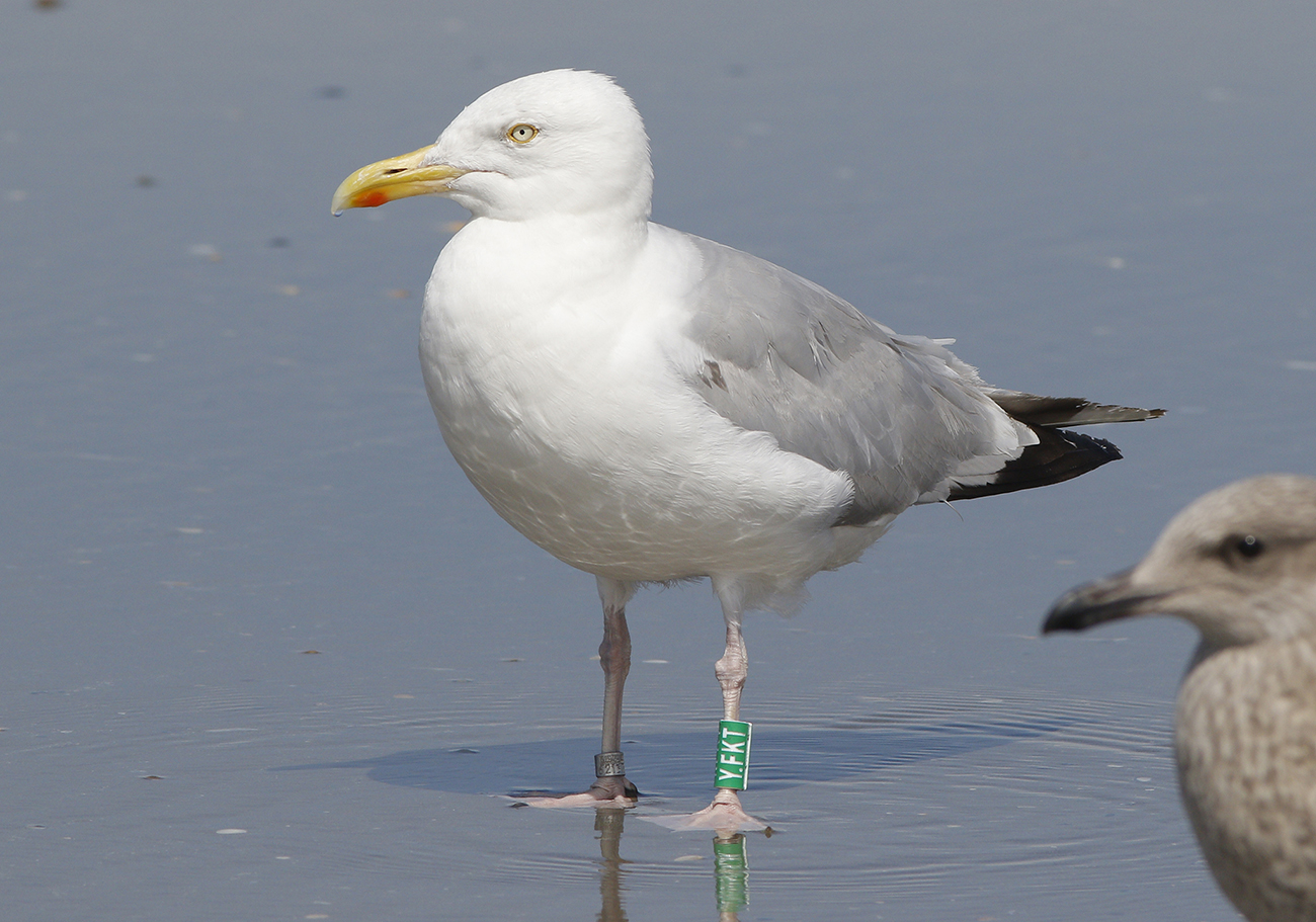 Herring Gull (argenteus) Y.FKT adult, 2025, IJmuiden, the Netherlands. Picture: IJmuiden Ringing Team.Ringed as breeding adult in season 2025 at Forteiland, IJmuiden. Ringed by Fred Cottaar ringing team. below: Herring Gull (argenteus) Y.FKT adult, July 29 2025, IJmuiden, the Netherlands. Picture: Mars Muusse.
