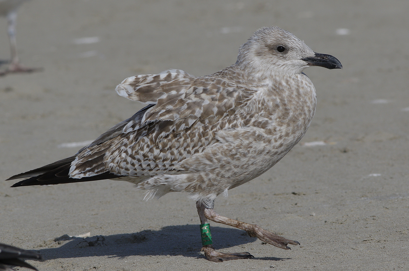 below: Herring Gull (argenteus) Y.FLA 1CY, August 07 2025, IJmuiden, the Netherlands. Picture: Mars Muusse.