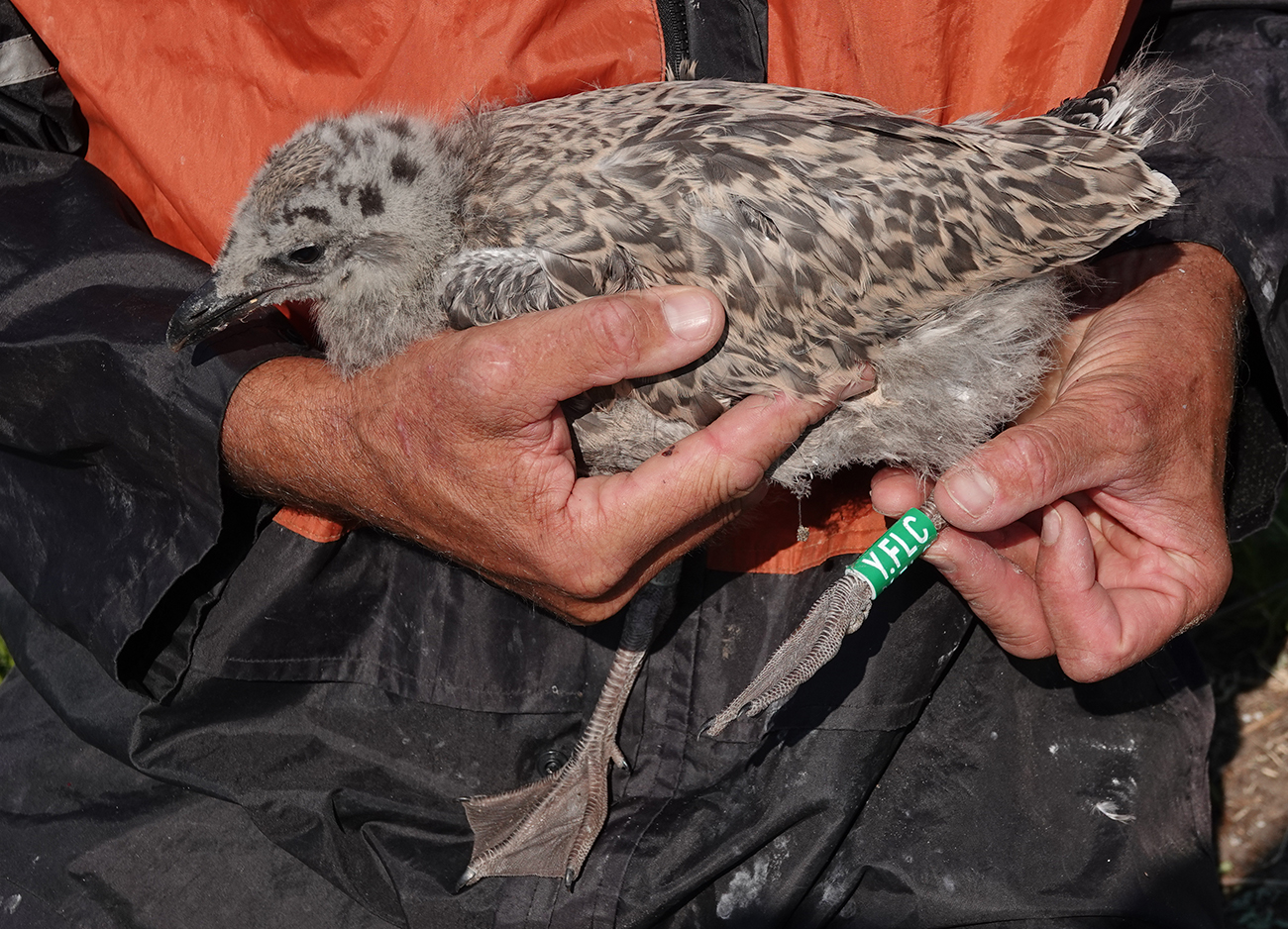 below: Herring Gull (argenteus) Y.FLC 1CY, June 20 2025, IJmuiden, the Netherlands. Picture: IJmuiden Ringing Team.