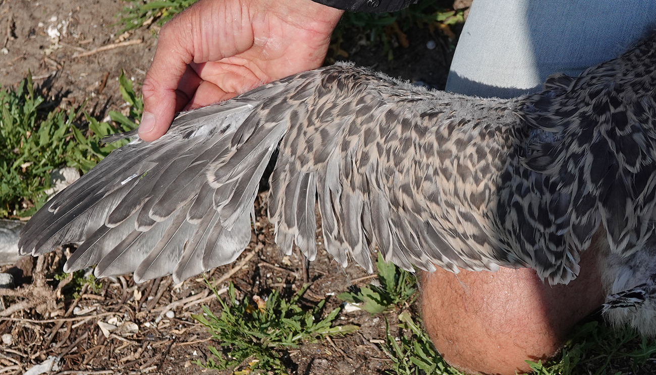 below: Herring Gull (argenteus) Y.FLC 1CY, July 29 2025, IJmuiden, the Netherlands. Picture: Mars Muusse.