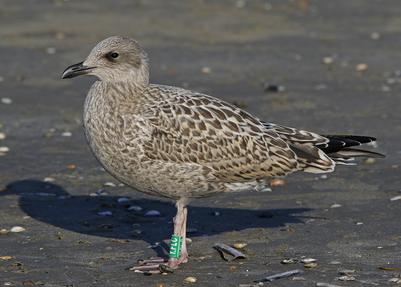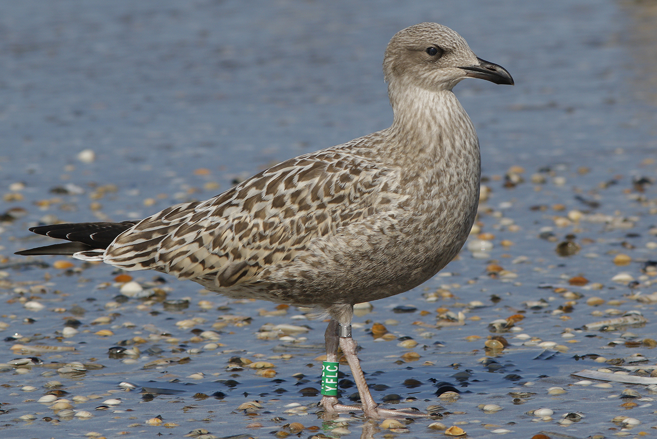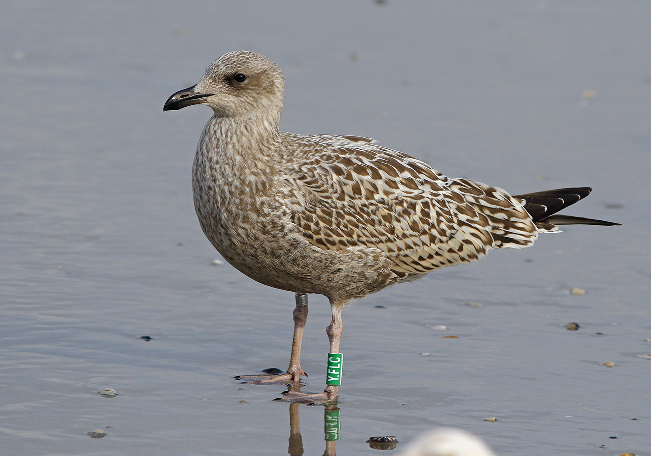 below: Herring Gull (argenteus) Y.FLC 1CY, July 11 2025, IJmuiden, the Netherlands. Picture: IJmuiden Ringing Team.
