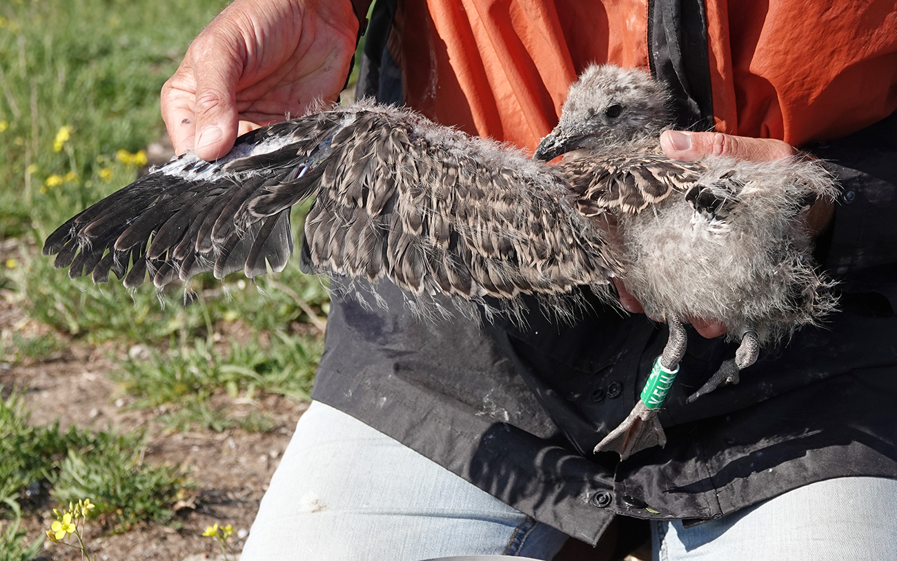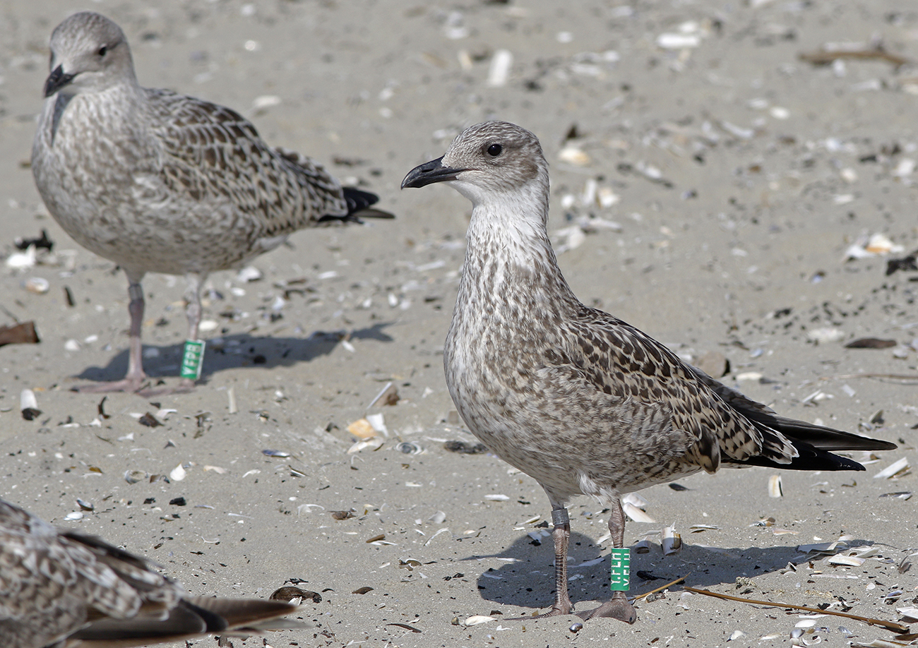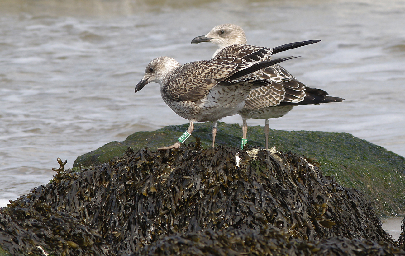below: Lesser Black-backed Gull (graellsii) Y.FLH 1CY, June 20 2025, IJmuiden, the Netherlands. Picture: IJmuiden Ringing Team.