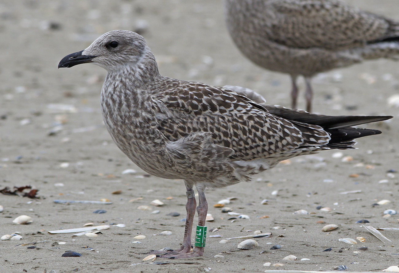 below: Herring Gull (argenteus) Y.FLL 1CY, 2025, IJmuiden, the Netherlands. Picture: IJmuiden Ringing Team.