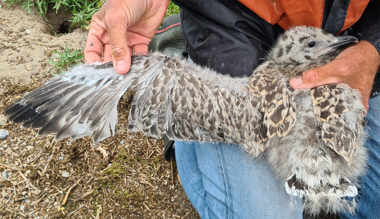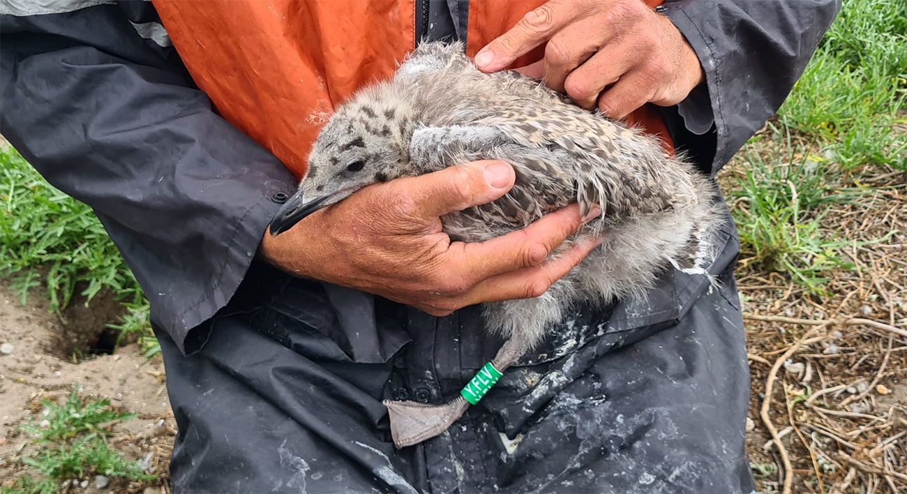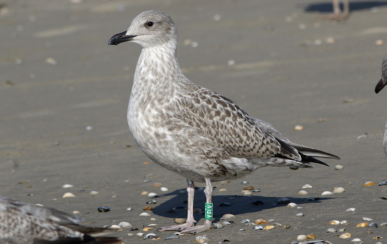below: Herring Gull (argenteus) Y.FLV 1CY, June 23 2025, IJmuiden, the Netherlands. Picture: IJmuiden Ringing Team.