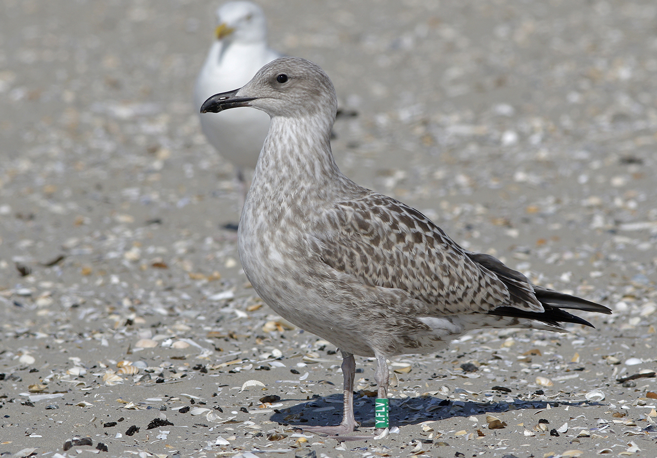 below: Herring Gull (argenteus) Y.FLV 1CY, July 25 2025, IJmuiden, the Netherlands. Picture: Mars Muusse.