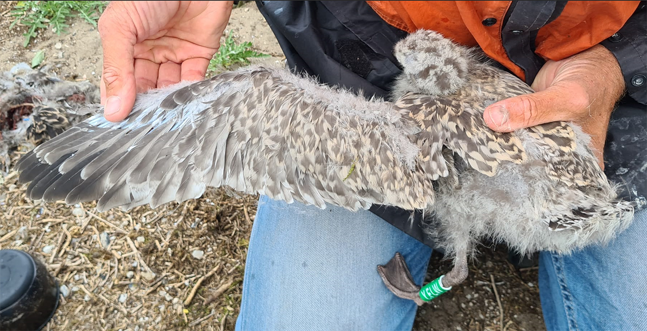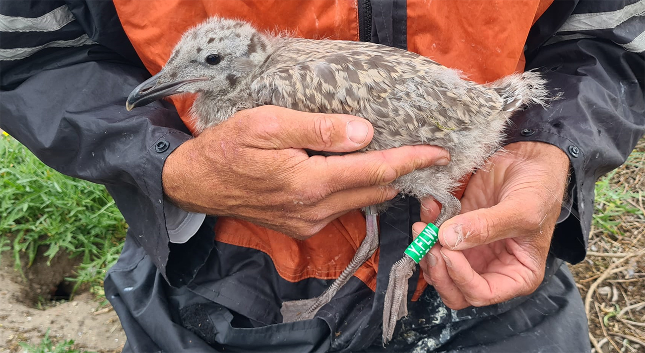 Herring Gull (argenteus) Y.FLW 1CY, 2025, IJmuiden, the Netherlands. Picture: IJmuiden Ringing Team.Ringed as pullus on June 23 2025, at Forteiland. Ringed by Fred Cottaar ringing team. below: Herring Gull (argenteus) Y.FLW 1CY, June 23 2025, IJmuiden, the Netherlands. Picture: IJmuiden Ringing Team.
