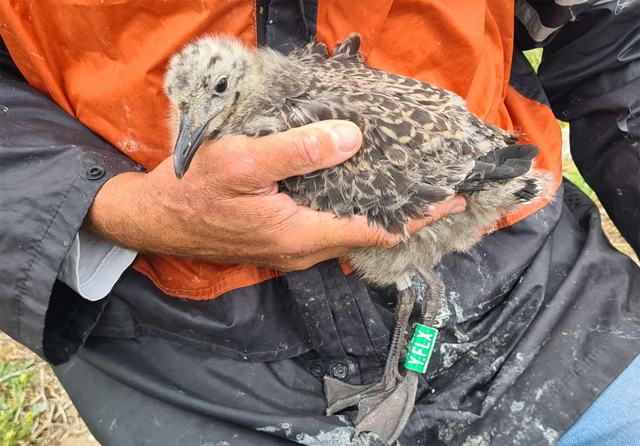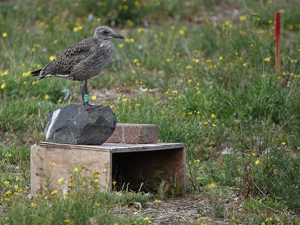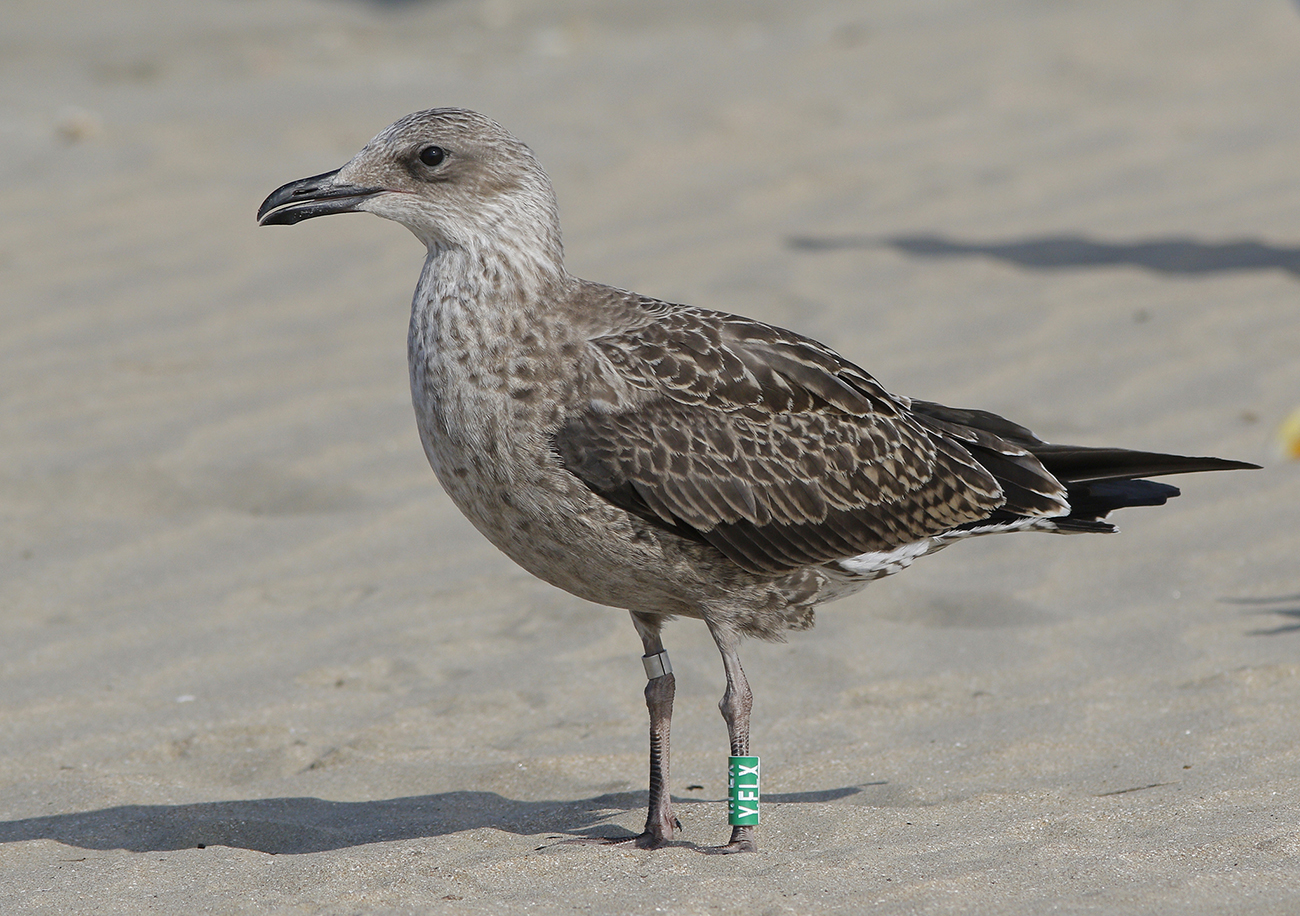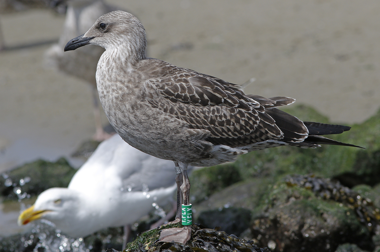 below: Lesser Black-backed Gull (graellsii) Y.FLX 1CY, June 20 2025, IJmuiden, the Netherlands. Picture: IJmuiden Ringing Team.