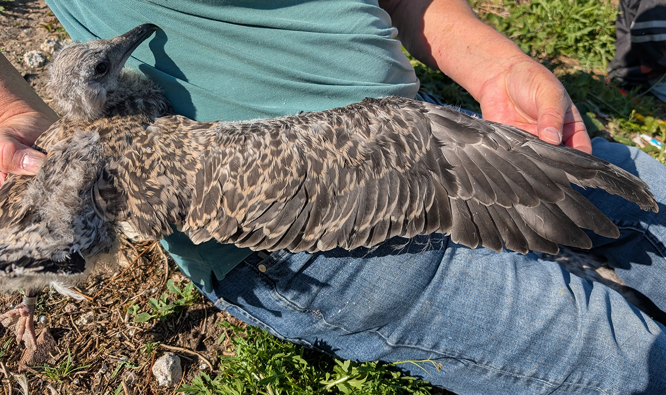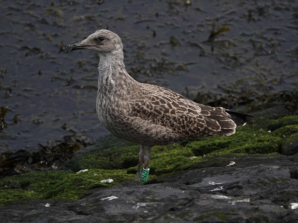 below: Lesser Black-backed Gull (graellsii) Y.FMJ 1CY, July 04 2025, IJmuiden, the Netherlands. Picture: IJmuiden Ringing Team.