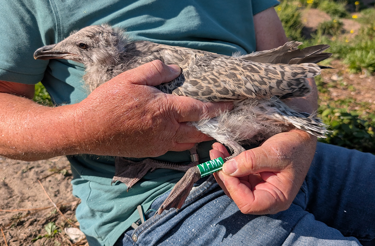 below: Herring Gull (argenteus) Y.FMK 1CY, July 04 2025, IJmuiden, the Netherlands. Picture: IJmuiden Ringing Team.