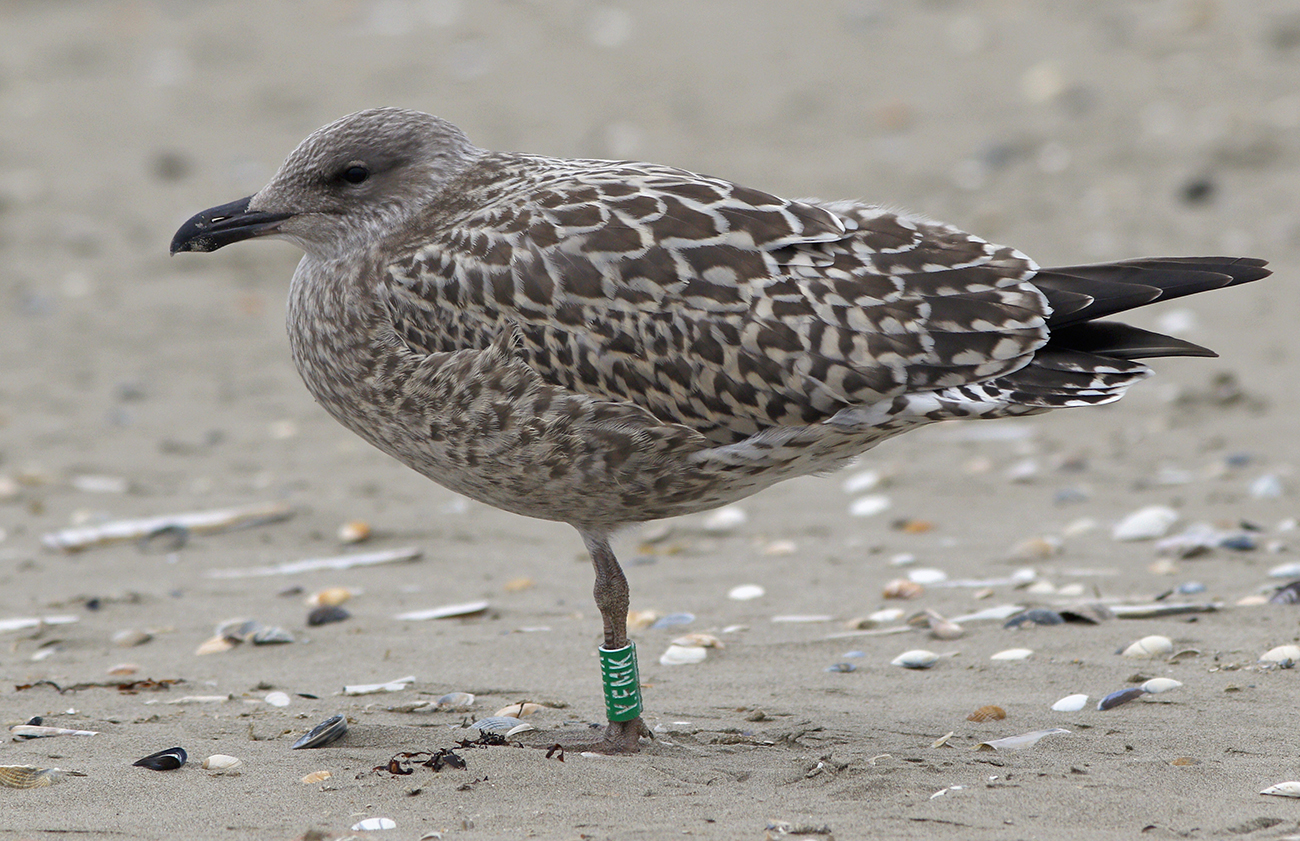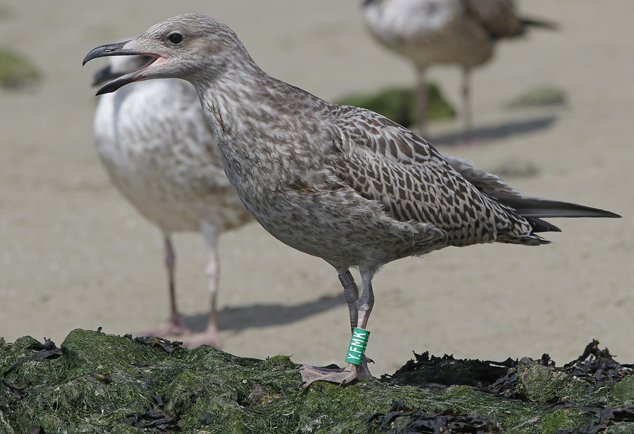 below: Herring Gull (argenteus) Y.FMK 1CY, July 26 2025, IJmuiden, the Netherlands. Picture: Mars Muusse.