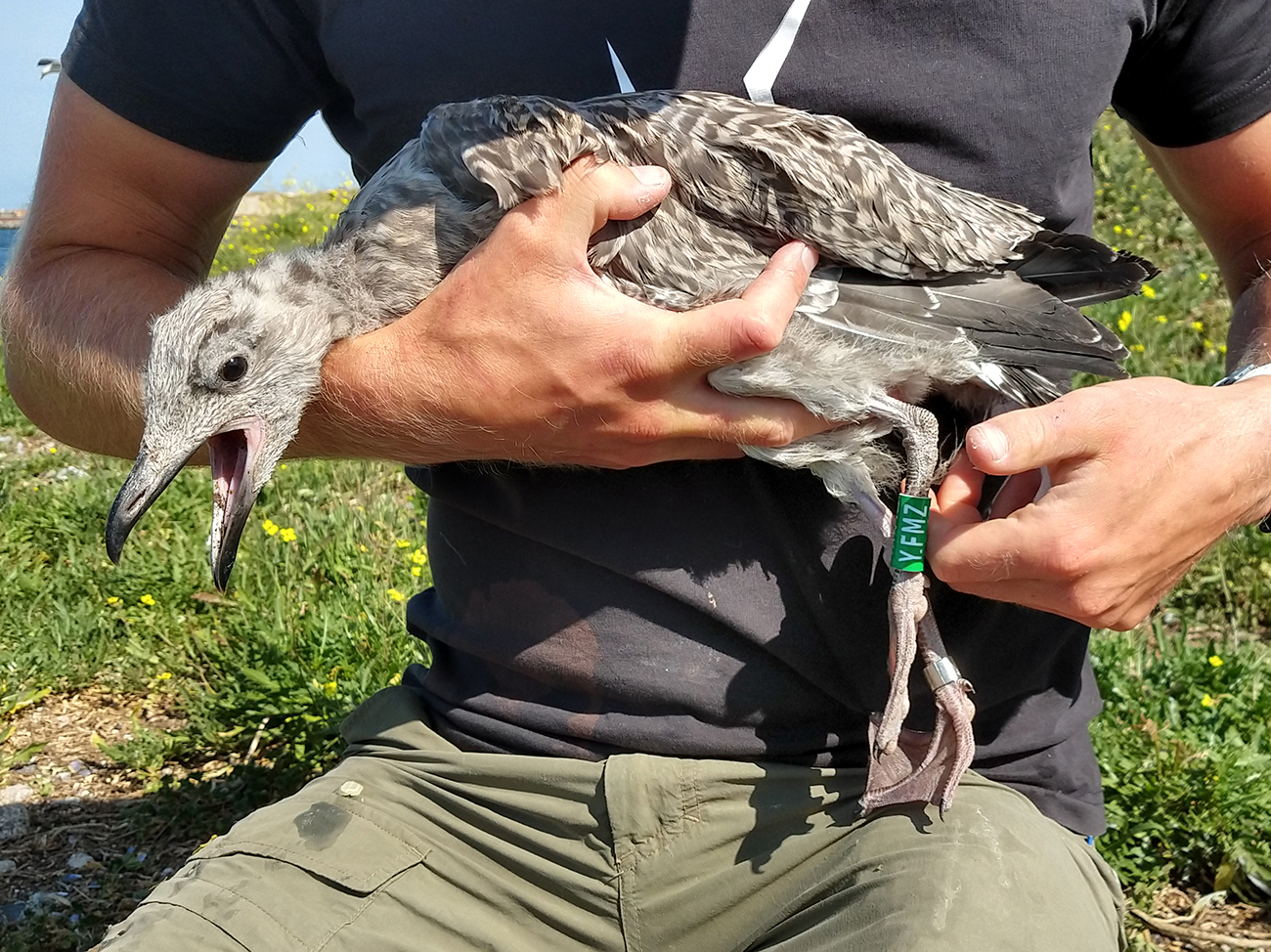 below: Herring Gull (argenteus) Y.FMZ 1CY, July 04 2025, IJmuiden, the Netherlands. Picture: IJmuiden Ringing Team.