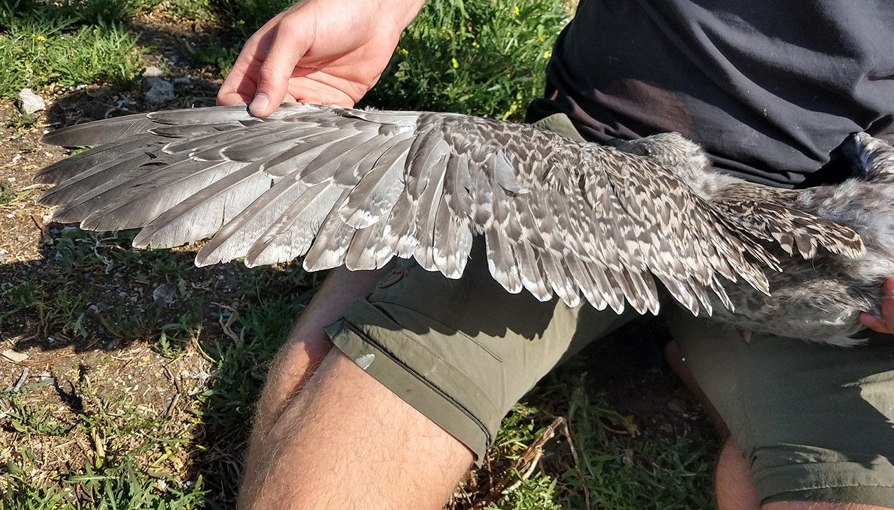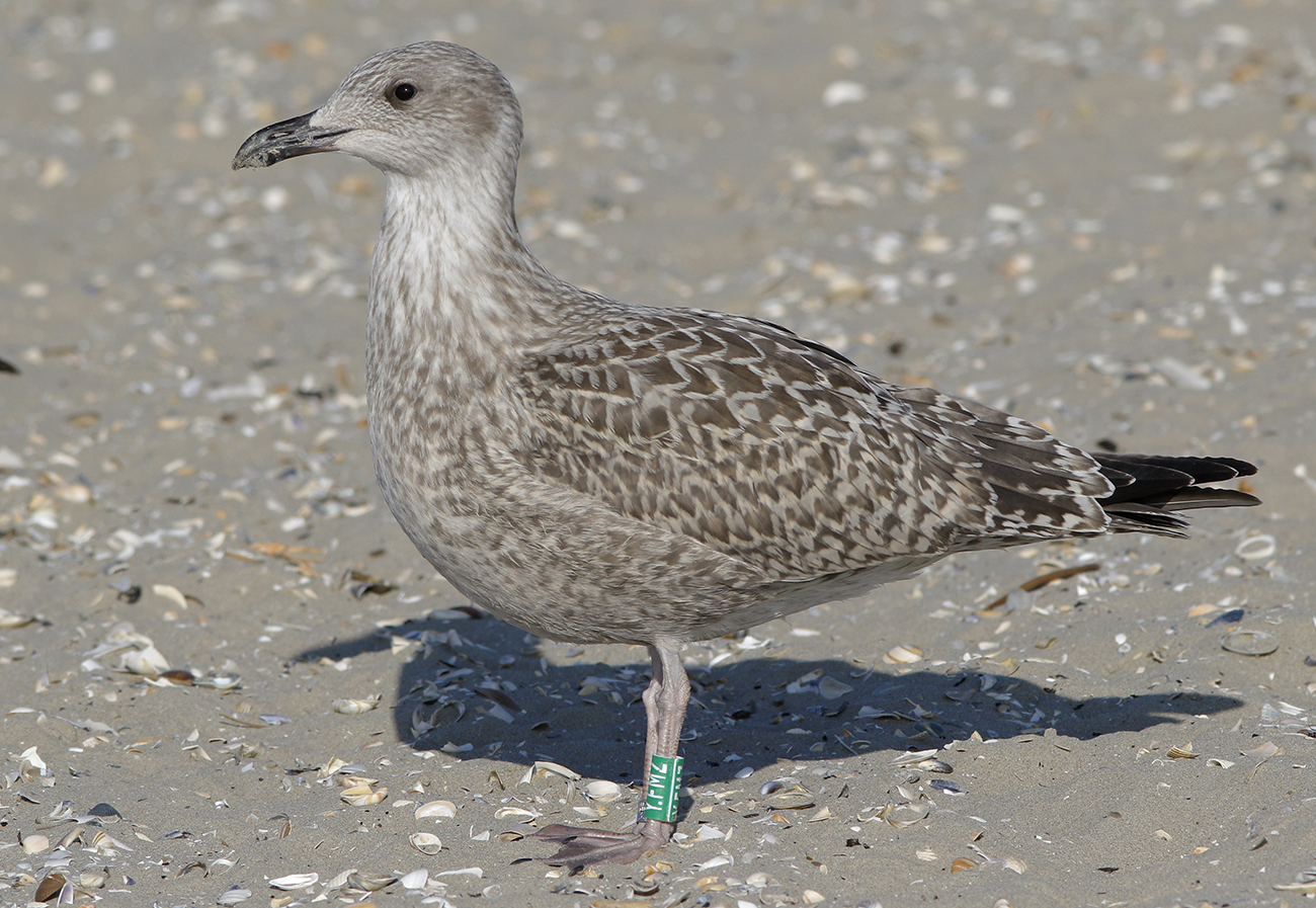 below: Herring Gull (argenteus) Y.FMZ 1CY, July 26 2025, IJmuiden, the Netherlands. Picture: Mars Muusse.