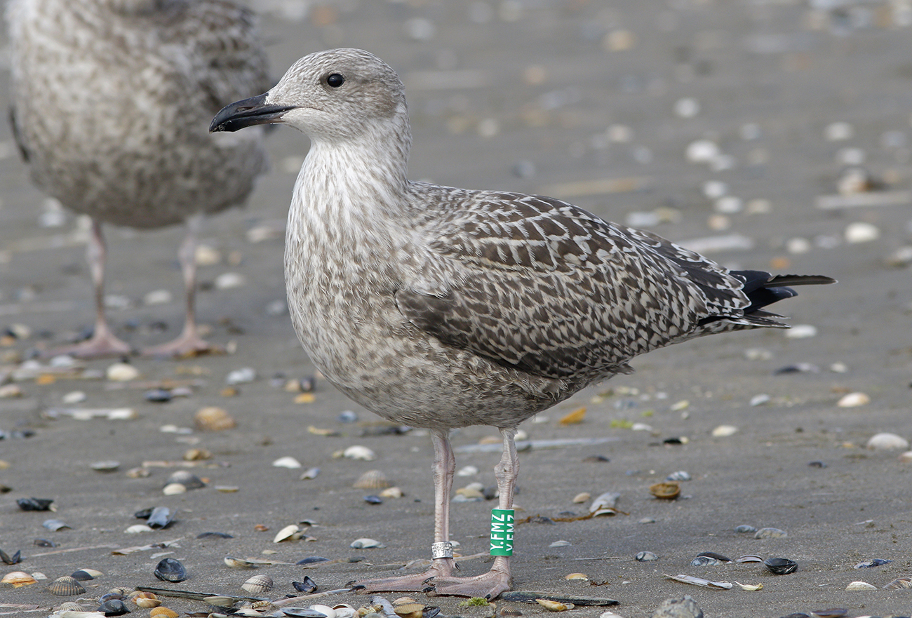 below: Herring Gull (argenteus) Y.FMZ 1CY, July 25 2025, IJmuiden, the Netherlands. Picture: Mars Muusse.