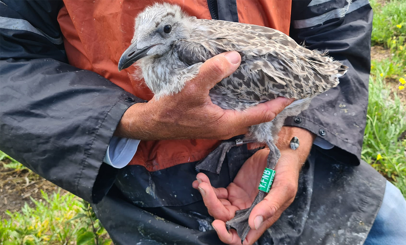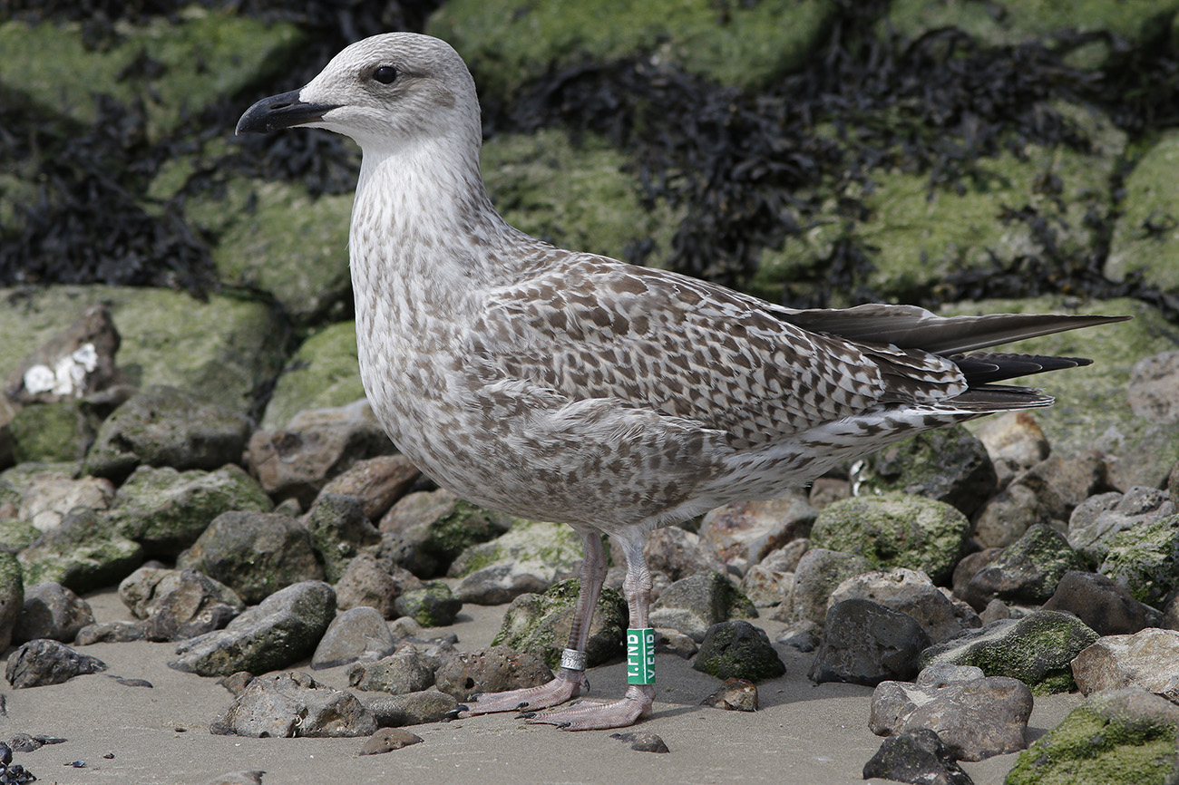 below: Herring Gull (argenteus) Y.FNB 1CY, June 23 2025, IJmuiden, the Netherlands. Picture: IJmuiden Ringing Team.