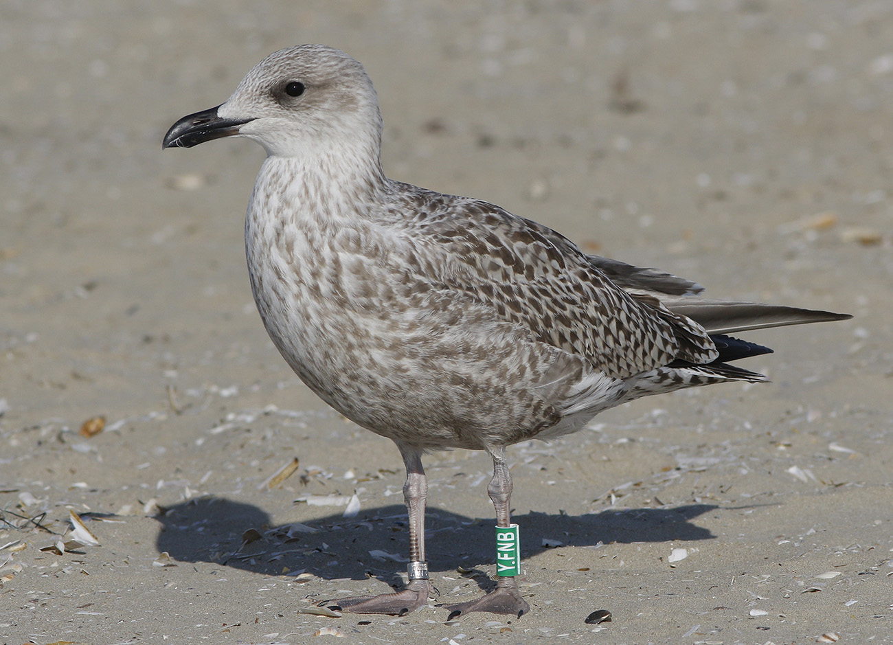 below: Herring Gull (argenteus) Y.FNB 1CY, July 25 2025, IJmuiden, the Netherlands. Picture: Mars Muusse.