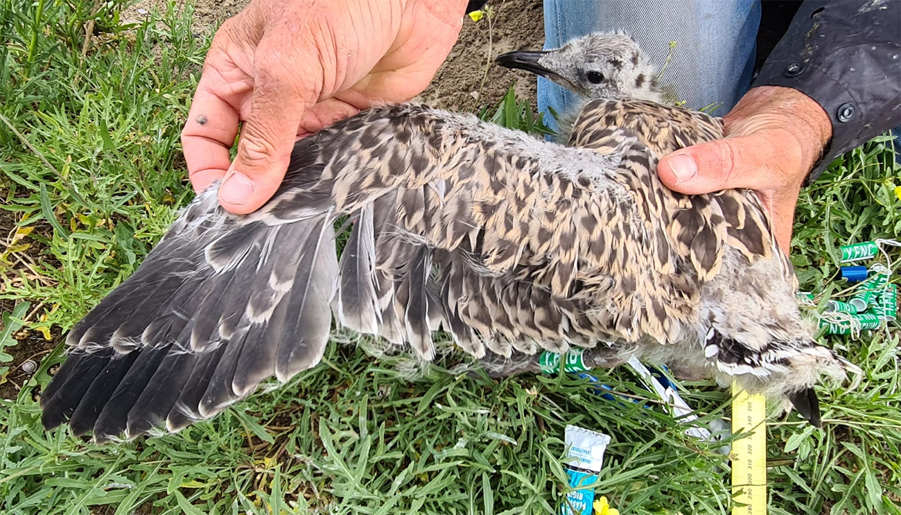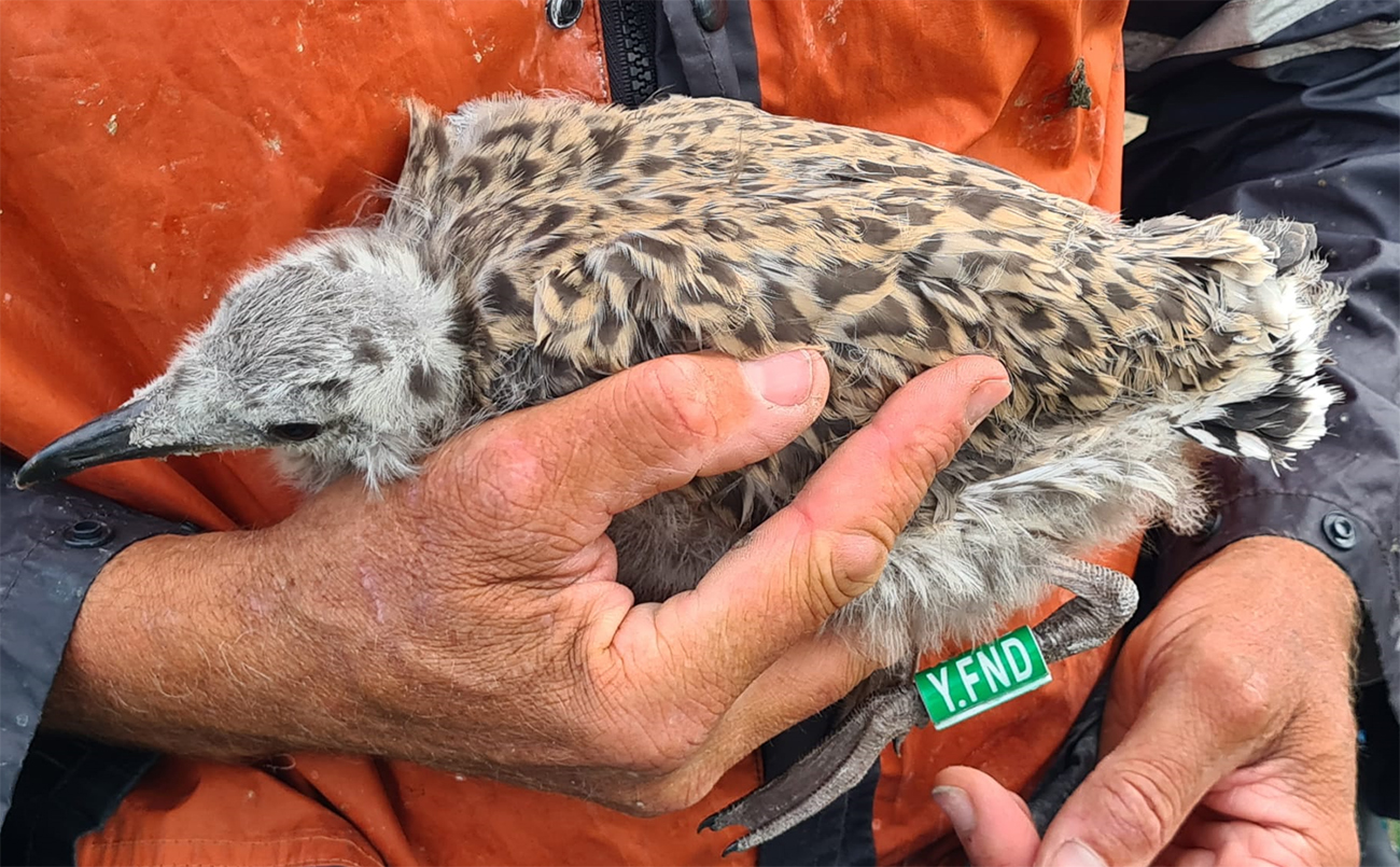 below: Lesser Black-backed Gull (graellsii) Y.FND 1CY, June 23 2025, IJmuiden, the Netherlands. Picture: IJmuiden Ringing Team.