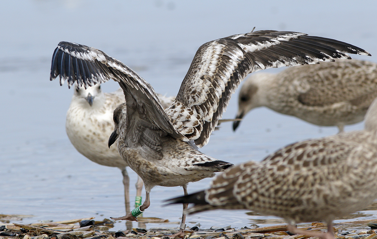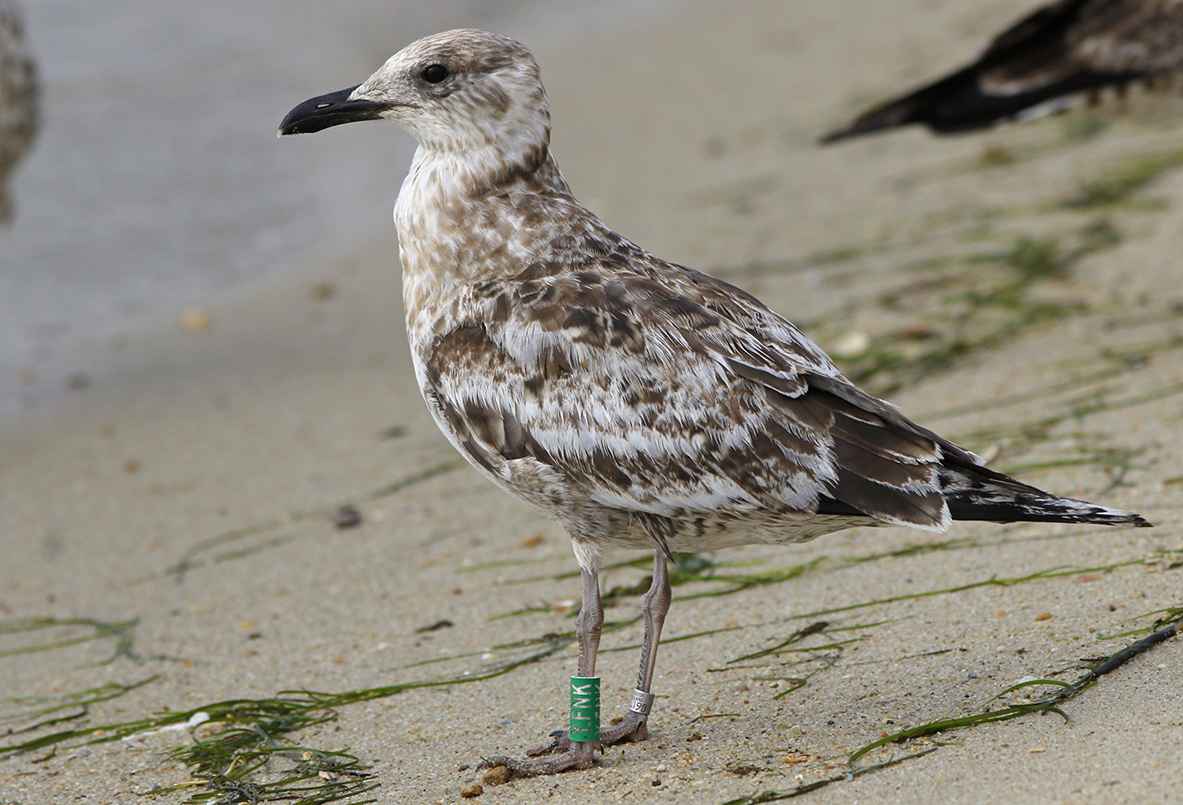 below: Lesser Black-backed Gull (graellsii) Y.FNK 1CY, July 29 2025, IJmuiden, the Netherlands. Picture: Mars Muusse.