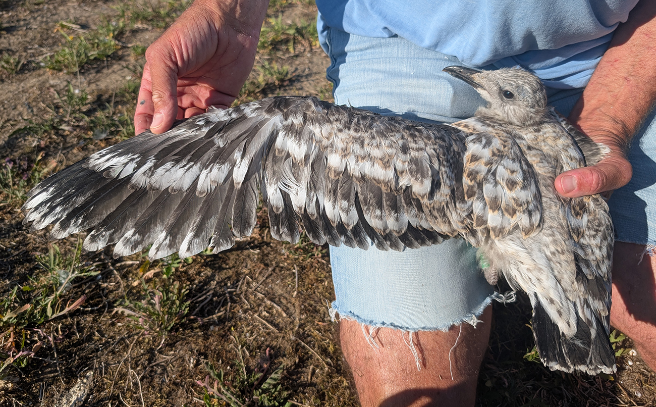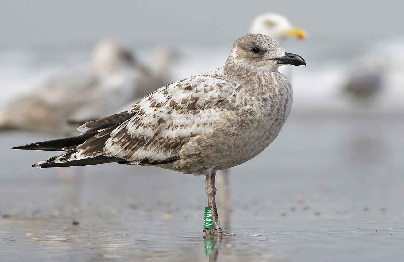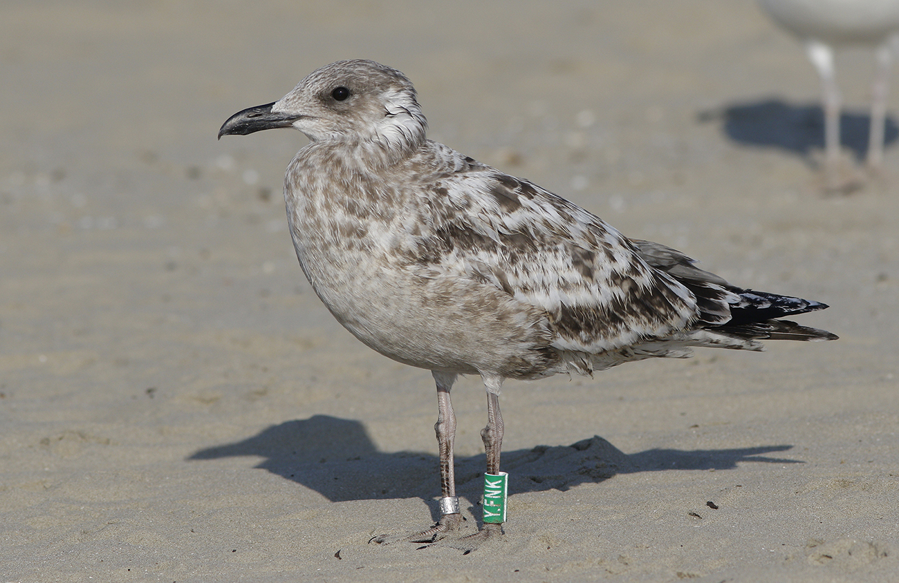 below: Lesser Black-backed Gull (graellsii) Y.FNK 1CY, July 01 2025, IJmuiden, the Netherlands. Picture: IJmuiden Ringing Team.