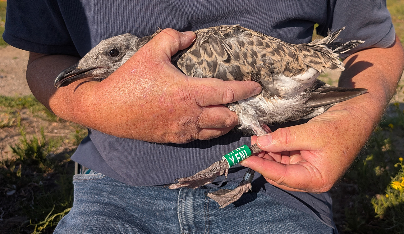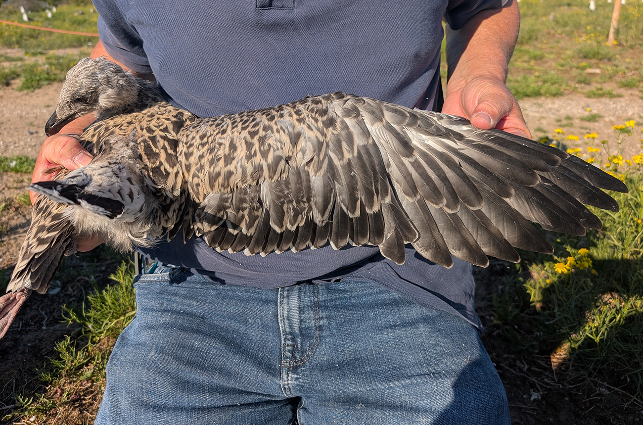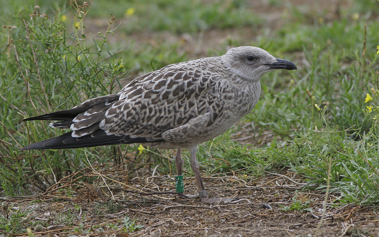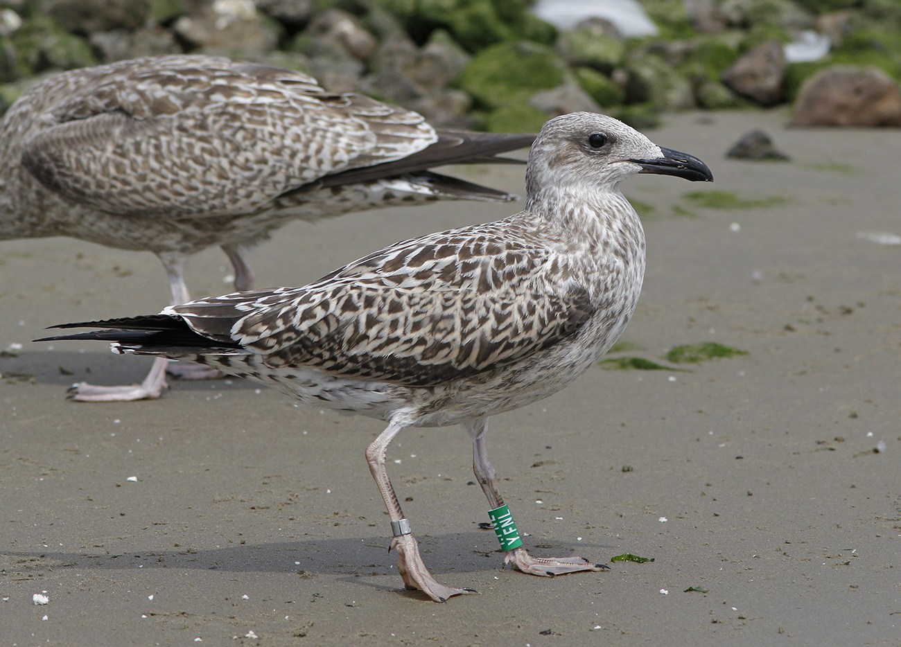 below: Lesser Black-backed Gull (graellsii) Y.FNL 1CY, July 01 2025, IJmuiden, the Netherlands. Picture: IJmuiden Ringing Team.