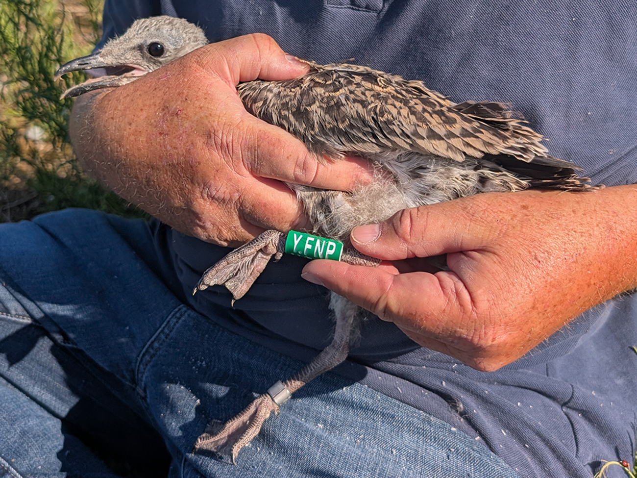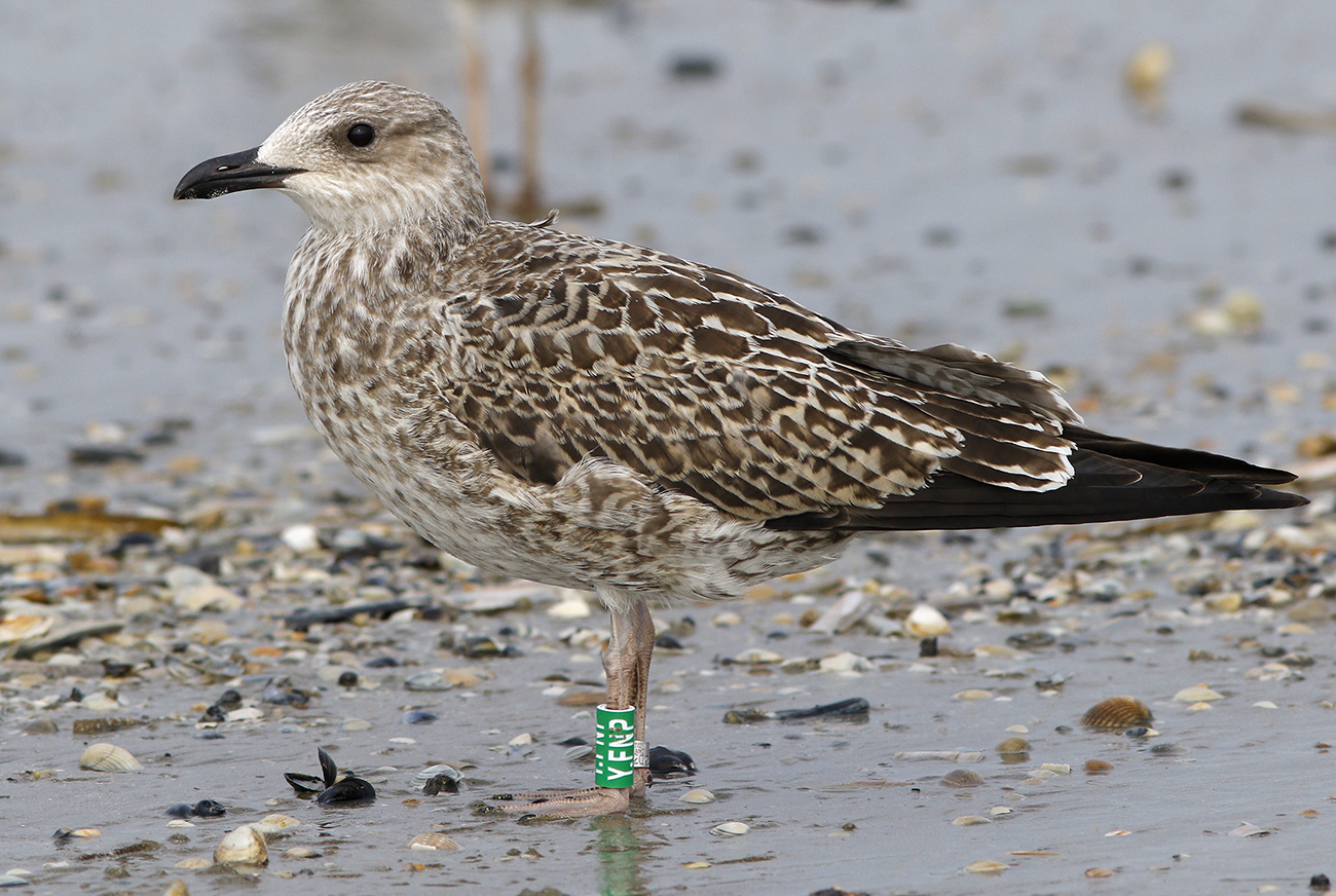 below: Lesser Black-backed Gull (graellsii) Y.FNP 1CY, July 01 2025, IJmuiden, the Netherlands. Picture: IJmuiden Ringing Team.
