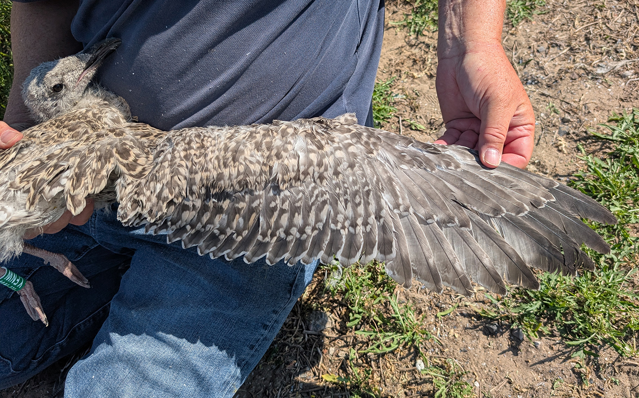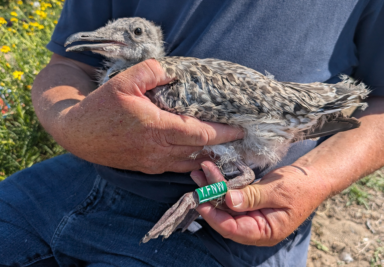 below: Herring Gull (argenteus) Y.FNW 1CY, June 23 2025, IJmuiden, the Netherlands. Picture: IJmuiden Ringing Team.