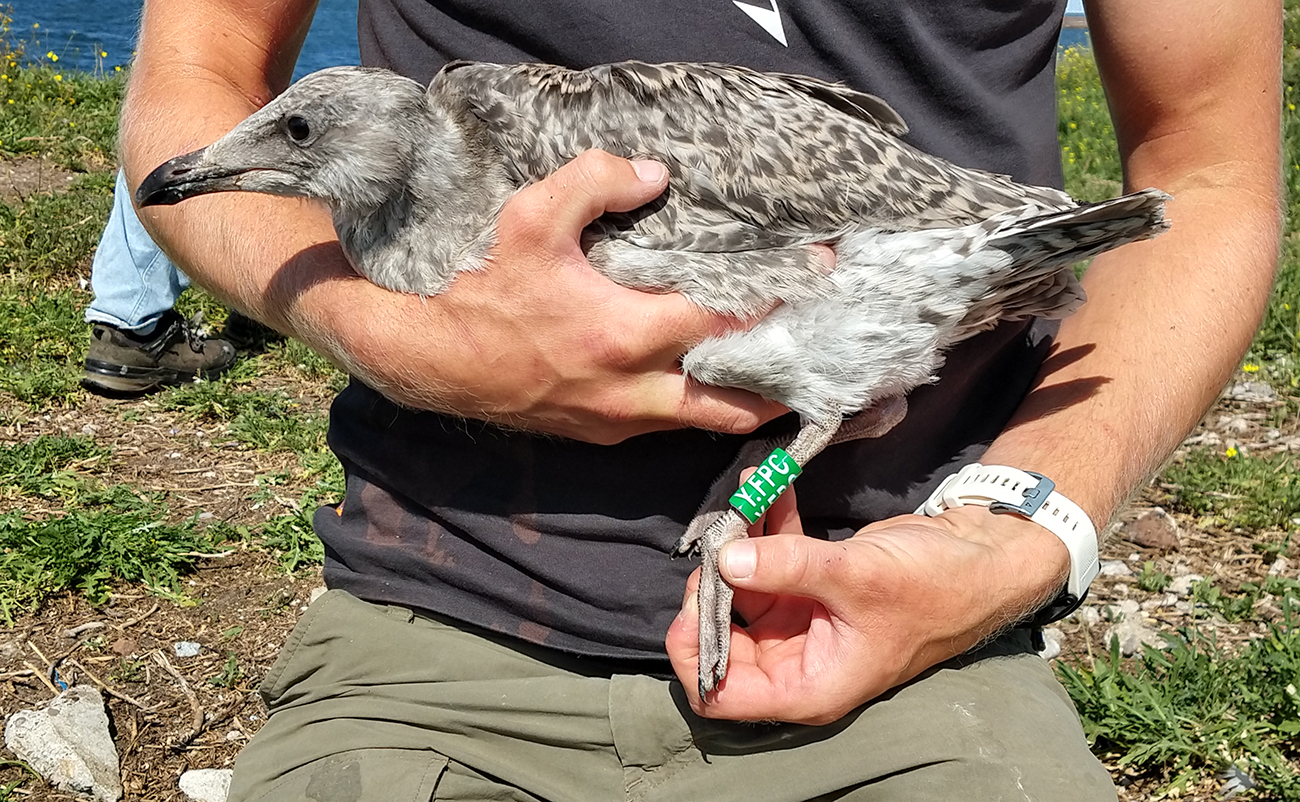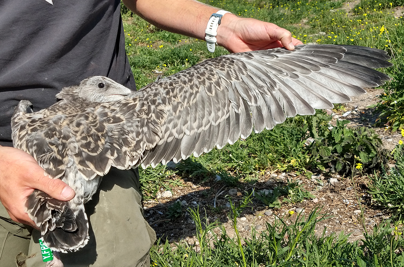 below: Herring Gull (argenteus) Y.FPC 1CY, July 04 2025, IJmuiden, the Netherlands. Picture: IJmuiden Ringing Team.
