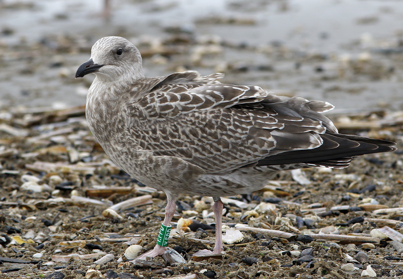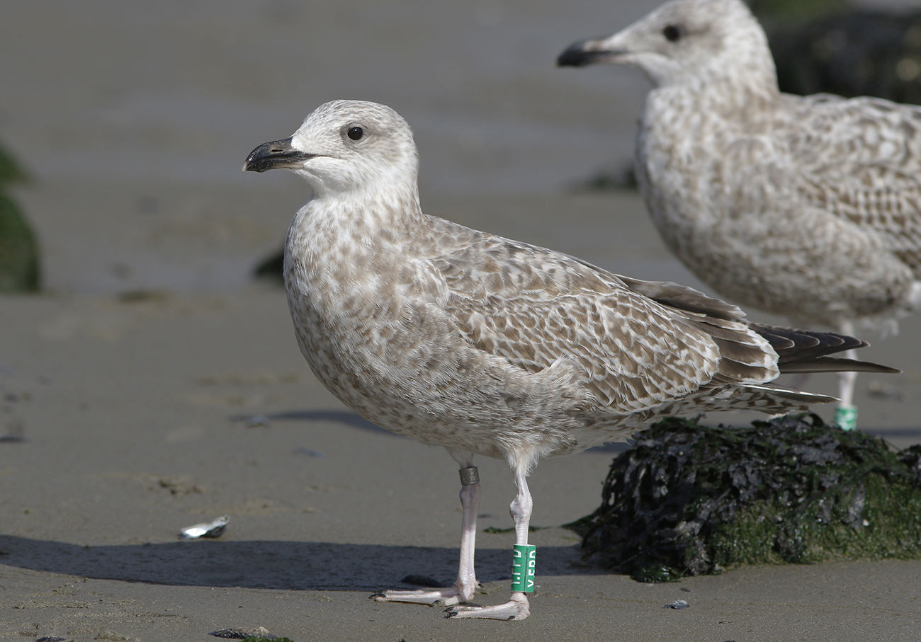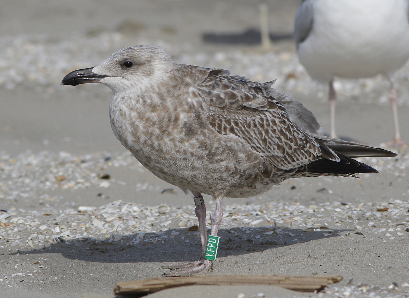 below: Herring Gull (argenteus) Y.FPC 1CY, July 04 2025, IJmuiden, the Netherlands. Picture: IJmuiden Ringing Team.