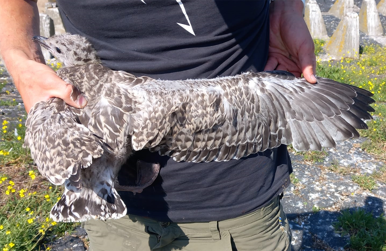 below: Herring Gull (argenteus) Y.FPJ 1CY, July 04 2025, IJmuiden, the Netherlands. Picture: IJmuiden Ringing Team.