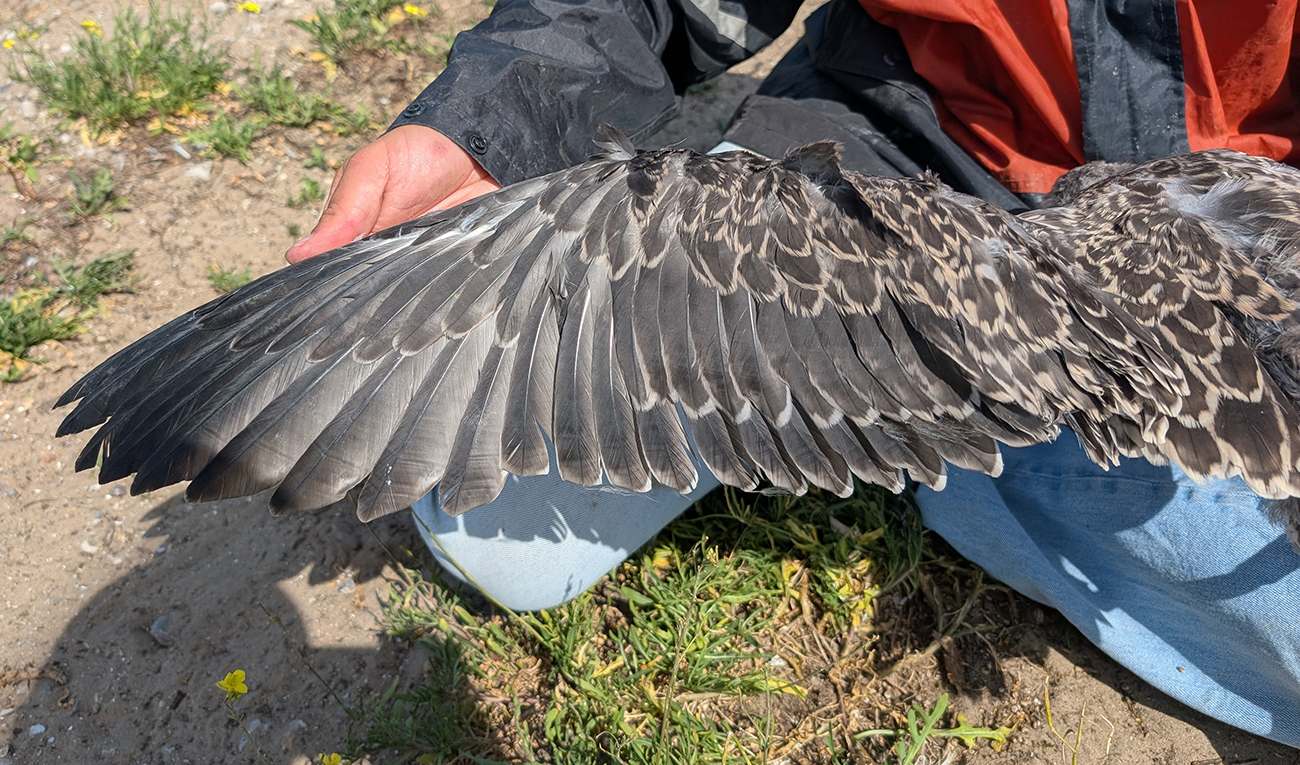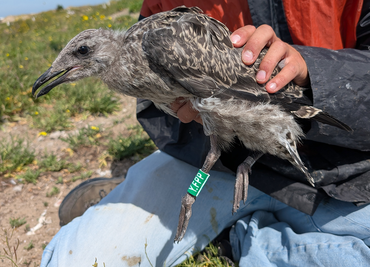 below: Lesser Black-backed Gull (graellsii) Y.FPP 1CY, July 04 2025, IJmuiden, the Netherlands. Picture: IJmuiden Ringing Team.
