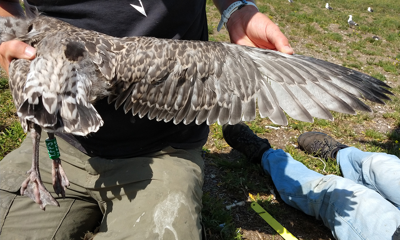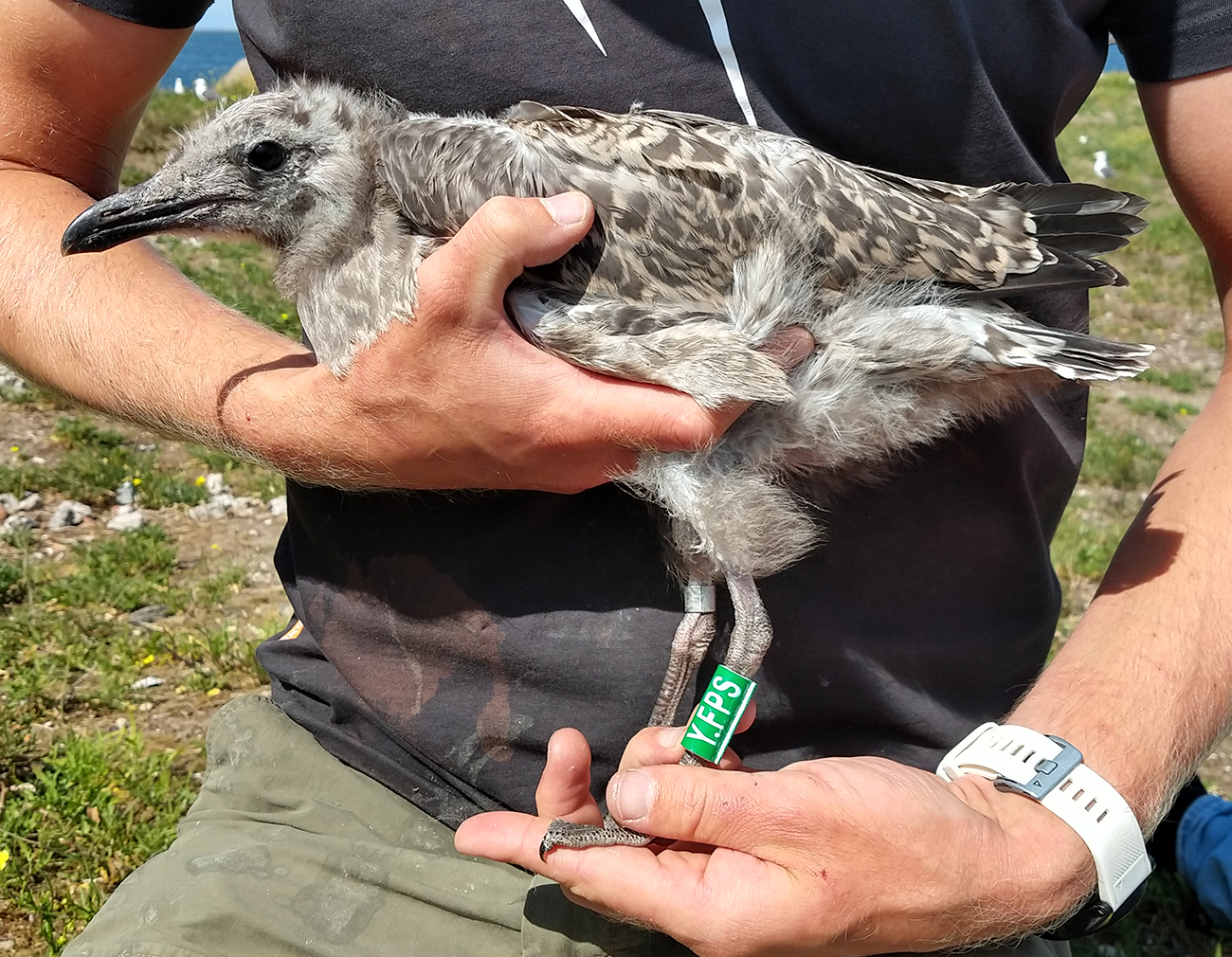 below: Herring Gull (argenteus) Y.FPS 1CY, July 04 2025, IJmuiden, the Netherlands. Picture: IJmuiden Ringing Team.