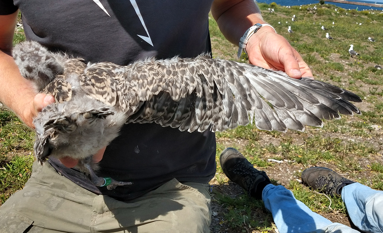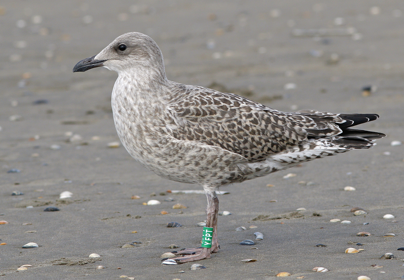 below: Herring Gull (argenteus) Y.FPT 1CY, July 04 2025, IJmuiden, the Netherlands. Picture: IJmuiden Ringing Team.