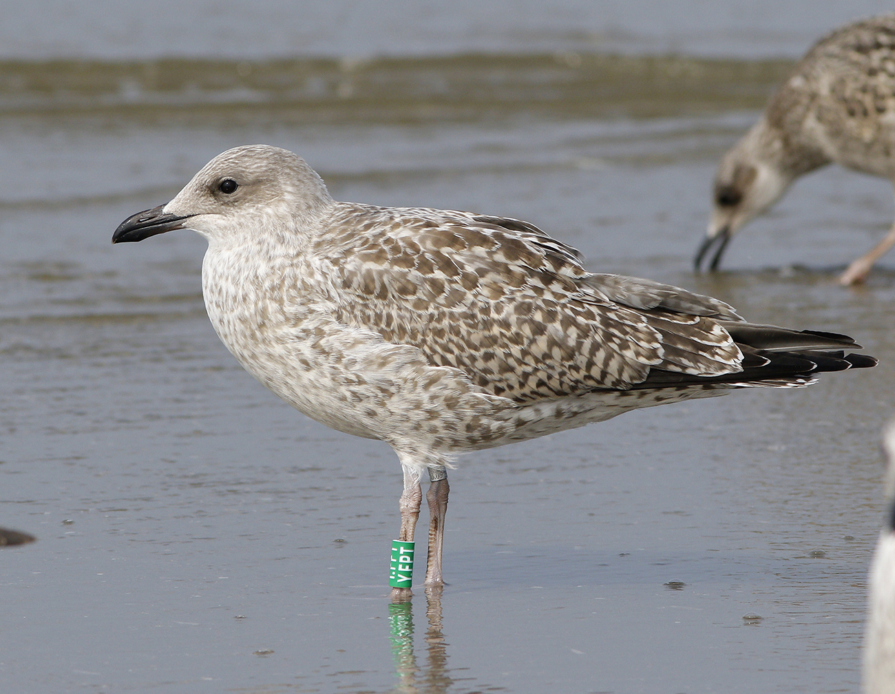below: Herring Gull (argenteus) Y.FPT 1CY, July 30 2025, IJmuiden, the Netherlands. Picture: Mars Muusse.