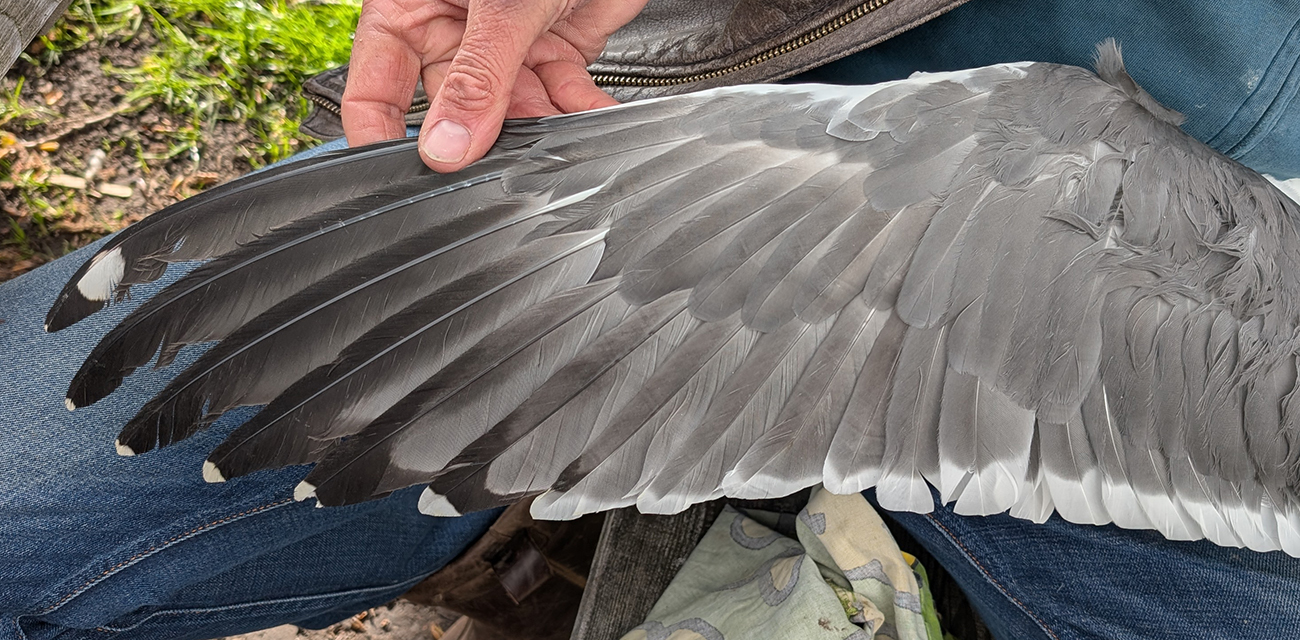 Lesser Black-backed Gull (graellsii) Y.HWM adult, March 30 2026, Amsterdam, the Netherlands. Picture: Thijs Horst & Mars Muusse.HPAIV-H5N1 monitoring for Vogeltrekstation Arnhem. Trapped in the city of Amsterdam, junction Hoofdweg - Erasmusgracht. below: Lesser Black-backed Gull (graellsii) Y.HWM >4CY, March 30 2026, Amsterdam, the Netherlands. Picture: Thijs Horst & Mars Muusse.