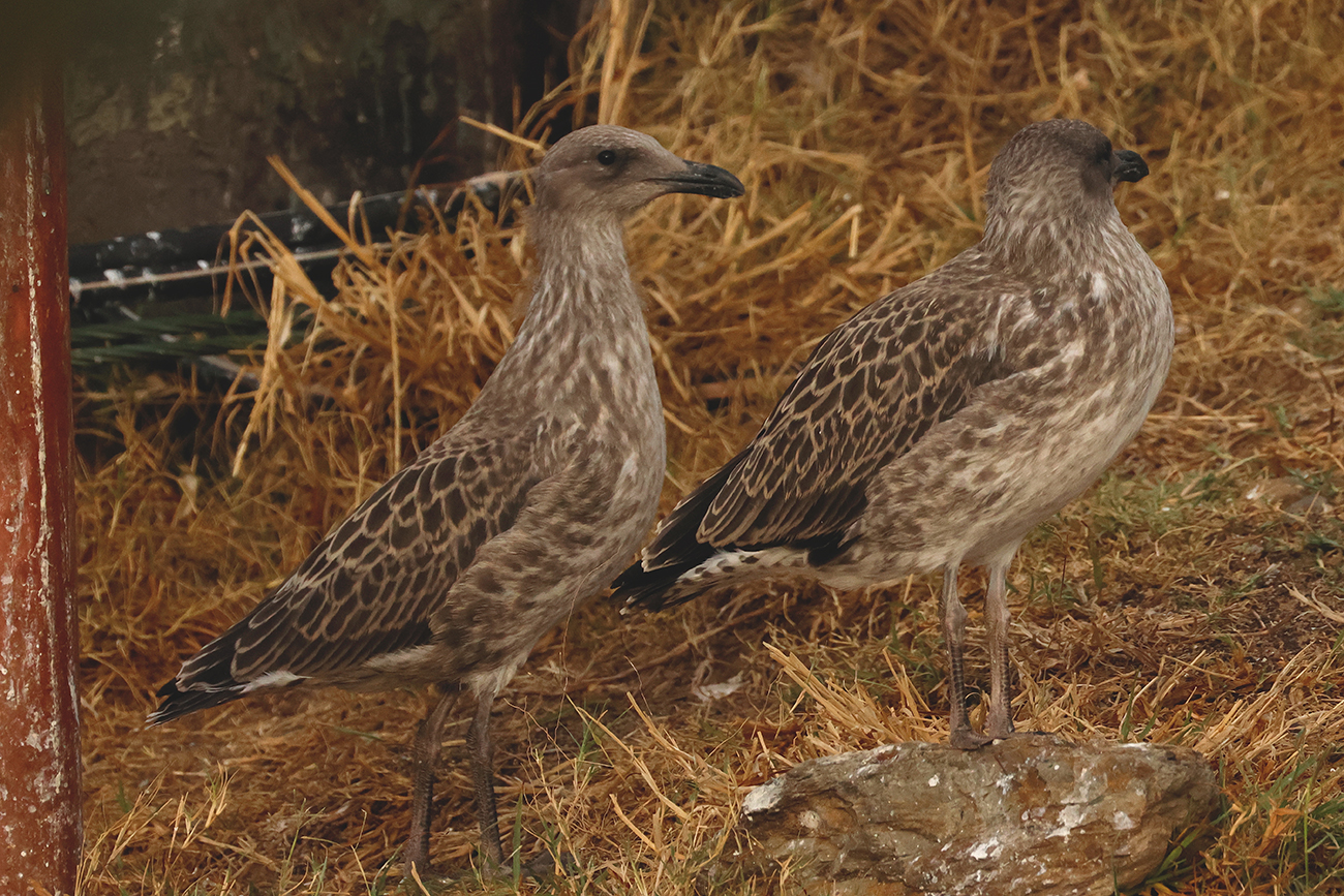 Kelp Gull (Larus dominicanus vetula) 1st cycle, December 12-15 2024, Simonstown - Kaapstad, South Africa. Picture: Chris Gibbins.Breeding season at this location (34°11'30S 18°25'52E) is in December, with this years birds almost fledging by mid-December. |