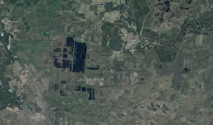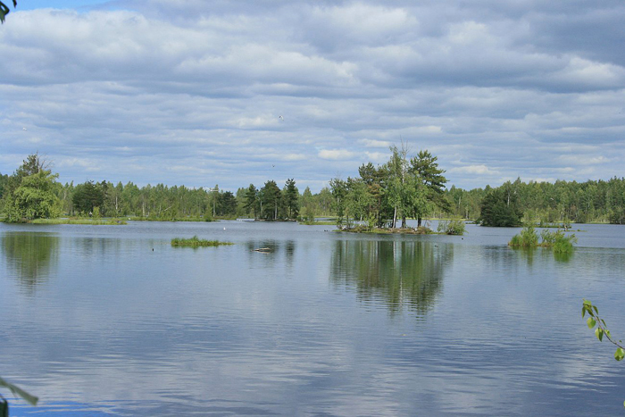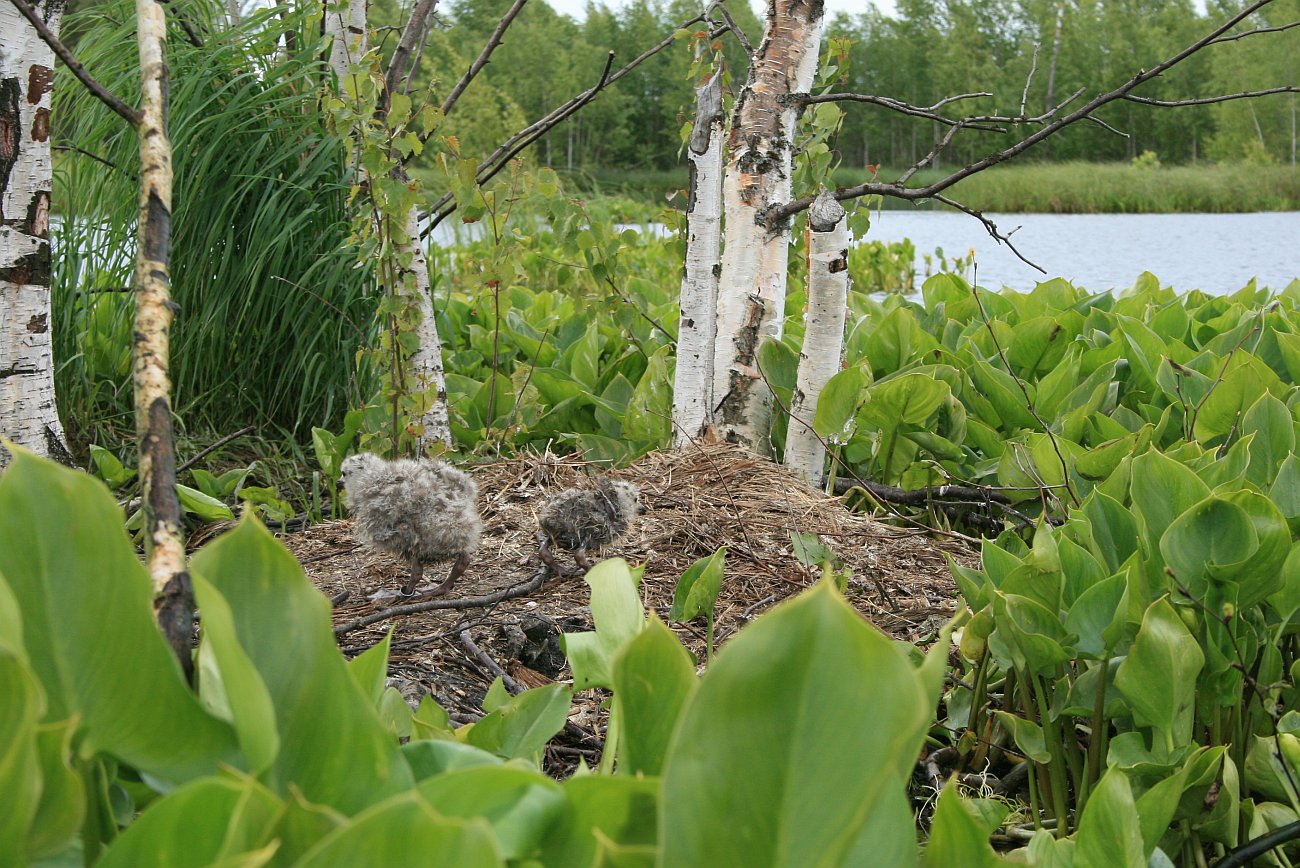 Peat bog, wet swamp habitat, approx 100 km west of the town Nizjni Novgorod. The aerial view shows many man made ponds. The area is very inaccessible, breeding islands best reached by boat.