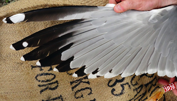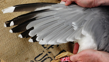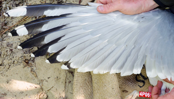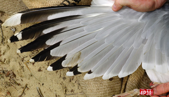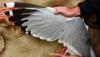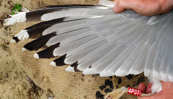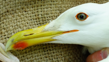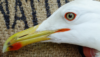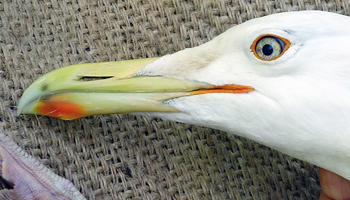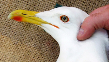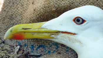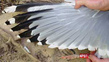 Larus argentatus 4P30 adult (plus hybrid offspring 7P84 & 7P85), May, July & December 2014, Poland. Picture: Łukasz Bednarz ringing team. |