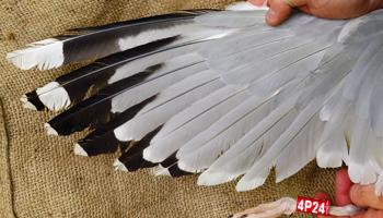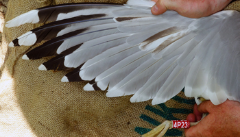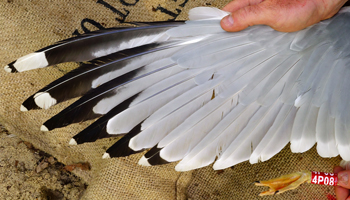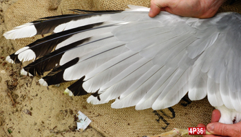 Larus argentatus sensu lato 4P18 adult, May 05 2014 & October 25 2014, Zastów Karczmiski & Wroclaw, Odra River, Poland. Picture: Łukasz Bednarz ringing team. |