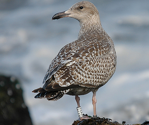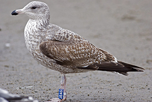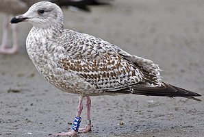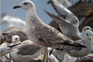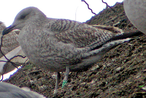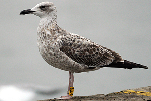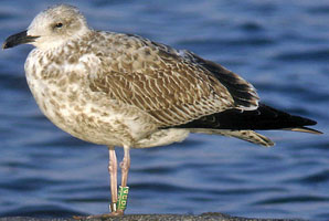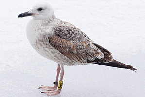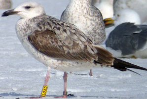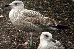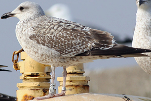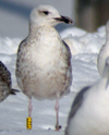 Larus cachinnans hybrid 2CY 795P February 06 2006, Chioggia, Italy. Picture: Marco Basso. |