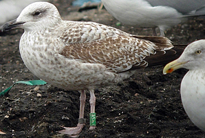Larus cachinnans 2cy V484 February 18 2009, København, Denmark. Picture: Lars Krogh. |