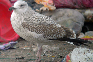 Larus cachinnans 2cy, 07 February 2009, Dubai fish market, United Arab Emirates. Picture: Chris Gibbins. |