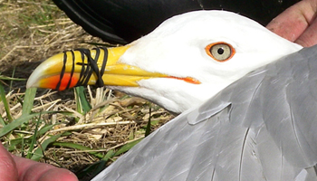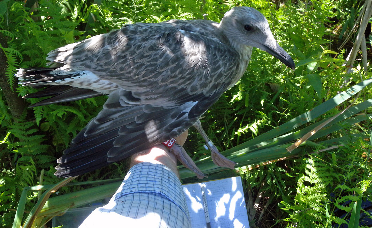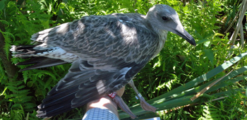 Larus cachinnans 2cy V453 June 11 2009, Simrishamn, Sweden. Picture: Jörgen Bernsmo. |