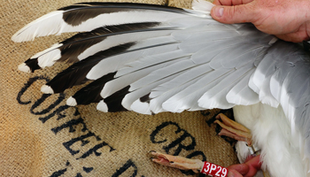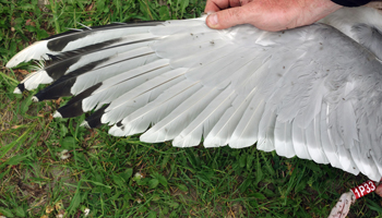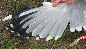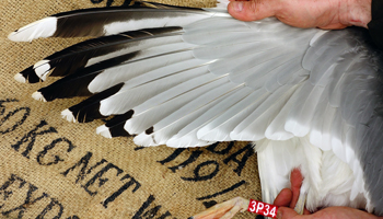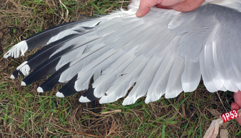 Larus cachinnans 1P13 adult, May 2013 & June 2014, Wytyckie Lake & September 20 2014, Stara Wies Landfill, Poland. Picture: Łukasz Bednarz ringing team. |