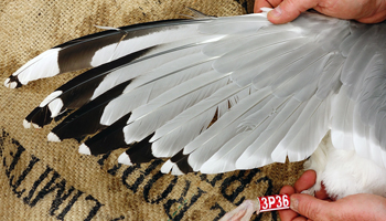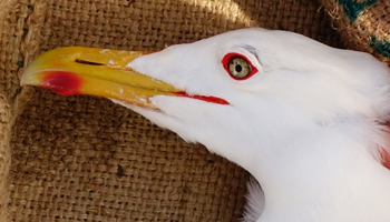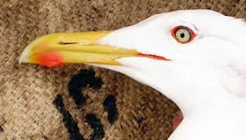 Larus cachinnans 1P21 adult, May 2013 & April 2014, Wytyckie Lake & April 2014, Łęczna landfill, Poland. Picture: Łukasz Bednarz ringing team. |