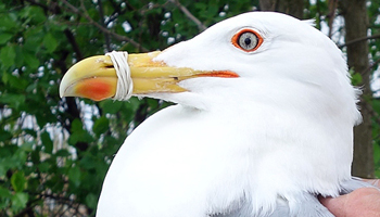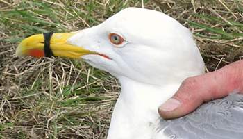 Larus cachinnans 1P19 adult, May 15 2013, Wytyckie Lake - Urszulin, Poland. Picture: Łukasz Bednarz ringing team. |