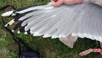 Larus cachinnans 1P28 adult, May 15 2013, Wytyckie Lake - Urszulin, Poland. Picture: Łukasz Bednarz ringing team. |