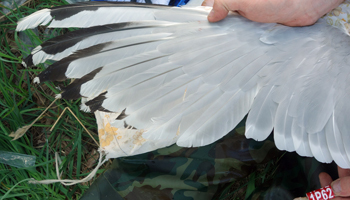 Larus cachinnans P402 adult, April 20 2012 & September 13 2013, Wytyckie Lake - Urszulin & Stara Wieś landfill, Poland. Picture: Łukasz Bednarz ringing team. |