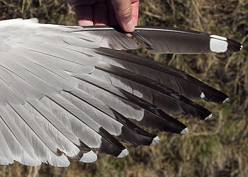 3cy cachinnans: April Phenotypic variation and systematics of Mongolian GullIN: Dutch Birding 23: 82, 2001 BY: Pierre Yésou PART 1: INTRO & DISTRIBUTION BELOW PART 4: DISCUSSION DiscussionMantle colour and wing-tip patternOn the basis of the type specimen collected in north-western Mongolia, Sushkin (1925) described the mantle of mongolicus as being darker than that of cachinnans, a statement repeated by Stepanyan (1990). Dement’ev (1951) described the mantle colour of mongolicus as similar to that of vegae. My research on museum skins showed that some birds of north-western Mongolia are on the darker side of the variation found in mongolicus, a tentative explanation of Sushkin’s description. Many mongolicus, however, are paler than this and their mantle colour overlaps with that of both cachinnans and vegae (see figure 1). Birds of the latter taxon can, however, be paler than any mongolicus, particularly in the northernmost part of the range of birulai (unpublished data from museum study). The grey inner tongue on P10 was mentioned by Sushkin (1925) but no information was available on the wing-tip pattern of mongolicus, except for Stegmann’s (1934) statement of seven to eight primaries with black and the presence of a subterminal black bar on P10, and complementary figures given by Panov & Monzikov (2000). My reference to a much larger set of birds showed that the inner tongue on P10, although usually pale grey (ie, paler than in vegae, which is in agreement with Sushkin’s original description), is darker in some birds and then resembles the pattern found in vegae and birulai. Also, the number of primaries with black (six to nine) is more variable than previously thought and the presence of a subterminal black bar on P10 is no absolute rule. Obviously, the larger the number of birds studied, the better the understanding of the phenotypic variation. Our knowledge, first based on small samples (either museum series or migrants of known origin), has strongly increased by studying birds in colonies (see, for instance, Buzun 1993, Filchagov 1993, Liebers & Dierschke 1997, Liebers & Helbig 1999, Panov & Monzikov 2000). This also holds for measurements, the range of which often increases with sample size (mean values are less affected). Bare-part colorationThe bare-part coloration of mongolicus I established agrees with most previous descriptions in the literature. The vermilion-red orbital ring was mentioned in Sushkin’s (1925) original description. The variability of iris and leg colours is known since Madge (1985). It remained, however, unquantified until Pyzhianov & Tupitchyn (1992) and this study. Such a large variation in bare-part coloration in one population may be surprising to western birders accustomed to colonies inhabited by uniformly looking Herring L. argentatus, Yellow-legged or Lesser Black-backed Gulls. However, the fact is that highly variable grey or brown pigmentation over the yellow iris occurs in breeding birds of all Asian taxa of the argentatus-cachinnans-fuscus complex, seemingly being the least marked in vegae (Filchagov 1993, Liebers & Dierschke 1997, Liebers & Helbig 1999, Panov & Monzikov 2000, Andrey Filchagov and V. I. Grabovsky pers comm, pers obs). It also occurs, although very rarely leading to grey-looking irides, in michahellis (N Baccetti pers comm). Regarding the variability of leg colour, this is also found in cachinnans (Liebers & Dierschke 1997, V. I. Grabovsky pers comm) and is commonplace in northern Siberia, from north-western Taimyr to the Lena delta at least, over the range of birulai (eg, Yésou & Hirschfeld 1997). Until Hirschfeld (1992) and Madge (1992), little attention has been paid to the frequency and size of dark bill-markings in adult large gulls. This is the first time that these are described for mongolicus. Such bill-markings are shared, in variable size and proportion, with the Asian taxa of the argentatus-cachinnans-fuscus complex (Filchagov 1993, Liebers & Dierschke 1997, Yésou & Hirschfeld 1997, Panov & Monzikov 2000). SystematicsRecently proposed systematic arrangements (eg, Devillers & Potvliege 1981, Haffer 1982, Devillers 1983, Stepanyan 1990, del Hoyo et al 1996, Sangster et al 1999) have generally presented mongolicus as a subspecies of cachinnans, in classifications encompassing (almost) all the southern taxa of Palearctic yellow-legged large white-headed gulls under cachinnans. This treatment is based on the supposed continuity in distribution (as given in oversimplified distribution maps like, for instance, the one in Yésou & Hirschfeld 1997), similarity in mantle colour and possibly also in the white head in winter shown by most southern taxa (atlantis, a subspecies of cachinnans according to some of the above-mentioned authors, is dark hooded in winter). This, however, remains a hypothetical classification, pending further research on the relationships between cachinnans and neighbouring taxa (eg, Yésou et al 1994, Sangster et al 1999). On the basis of the now available information, it is clear that there are marked phenotypic differences between mongolicus and cachinnans, particularly in wing-tip pattern (the number of primaries with black, the grey inner tongue and subterminal black bar on P10; see, for instance, Garner & Quinn (1997) and Jonsson (1998) for a description of the wing-tip of cachinnans) and underwing colour (pale grey in mongolicus and white in cachinnans). Such differences are sufficient to consider mongolicus and cachinnans as different species under the Phylogenetic Species Concept (PSC). Proponents of the Biological Species Concept (BSC) could argue that intergradation remains a possibility in a still undocumented contact area. If intergradation ever occurs, it should in any case be limited by the low density of both mongolicus and cachinnans in the neighbouring part of their respective breeding ranges (Pyzhjanov & Tupitsyn 1994, Pyzhianov 1996, Andrey Filchagov pers comm). Occasional m