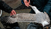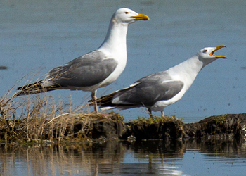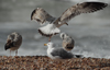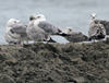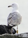 Leg colourPyzhianov & Tupitchyn (1992) described the high degree of variability of the leg colour at Lake Baikal and in Mongolia. They examined various series of birds in the hand, comparing the leg colour with colour charts. Grey legs accounted for 22-40%, yellow 13-27%, pink 21-46% and flesh 4-10%, while 6-30% of the birds showed mix-coloured legs. The proportion of each colour type varied between colonies and from one year to the other in a given colony. Also, in a proportion of birds, the leg colour showed temporal changes. According to Pyzhjanov (1998), not only the intensity but also the tone of the coloration changes, He hypothesized that these changes are related to external conditions (food composition) and age. It is a largely acknowledged fact that carotine-rich food can enhance the expression of the carotinoid colouring matter in the legs of gulls (cf Lonnberg 1933). Any relation with age, however, remains to be proven. I examined in the hand the legs and feet of 152 birds of most colonies I visited at Lake Baikal. It readily appeared that the fleshy-pink colour usually was tinged with some yellow pigment over a very variable extent, Yellow was more often found on and around the knee and on the rear leg while webs often were of a deeper pink (one pink-legged bird with orange webs was most unusual). Some birds exhibited either bright pink or yellow (pale to bright, then resembling michahellis) legs but most showed a variable leg colour. This rendered any reference to colour charts rather subjective and I relied on my own assessment when establishing the dominant leg colour in the examined adult birds. Of them, 15.8% had flesh-to-pink legs, 76.3% yellowish-flesh, 5.9% pale yellow and 2% bright yellow. In the field, the perception of the yellow tinge varies markedly, depending on the light incidence and on whether the legs are wet or not (yellow shows better on wet legs). Even birds which seem to have yellow legs when looked at them with the naked eye occasionally showed pinkish legs through binoculars. The field score nevertheless matched the in-hand results, with almost all 555 birds studied in the field showing ’pale’ (ie, flesh or pink more or less obviously admixed with yellow) legs and only seven (1.3%) yellow legs. END OF PART 3 |
