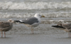 Yellow-legged Gull Larus michahellis Until now, breeding of this species has been proven at six sites (Fig. 1): Mietkéw Reservoir, Lower Silesia - single pairs in 1998 (POLA et al. 1998) and 2001; Nysa Reservoir, Lower Silesia - mixed pair with Caspian Gull in 2000-2001 (TOMIALOJC & STAWARSZYK 2003); Tarnéw - three females trapped on two different nests in 2000 (including female-female pair, BETLEJA et al. in prep.); Jankowice, where two males were trapped in 1999 and 2001 (FABER et al. 2001), a female paired with a male Caspian Gull was found in 2003 (raised three young) and a female ringed as a chick in Italy - Basson, Porto Tolle, Rovigo (May 25 1997; 44°58’N, 12°32`E) was caught on the nest in 2004 (again a female-female pair, with Caspian Gull); Wloclawek Reservoir with single female trapped at the nest in 2003 and seen again breeding next year. The only small “population” breeding regularly was present in 1995-1999 at the middle Vistula islands between Deblin and Kozienice power station: 1-3 breeding pairs were observed every year and 10 birds were trapped in total on the nests (Fig. 1, Fig. 3). After 1999, these birds probably moved to the newly established colony near Zastéw Karczmiski (c. 70 km south of previous breeding sites), where in 2004 an alarming pair, probably with chicks nearby, one single bird paired with a Caspian Gull with chicks and one subadult were seen. Currently, it seems that no more than 5-10 pairs of Yellow-legged Gulls breed in Poland, some in mixed pairs with Caspian and Herring Gulls.